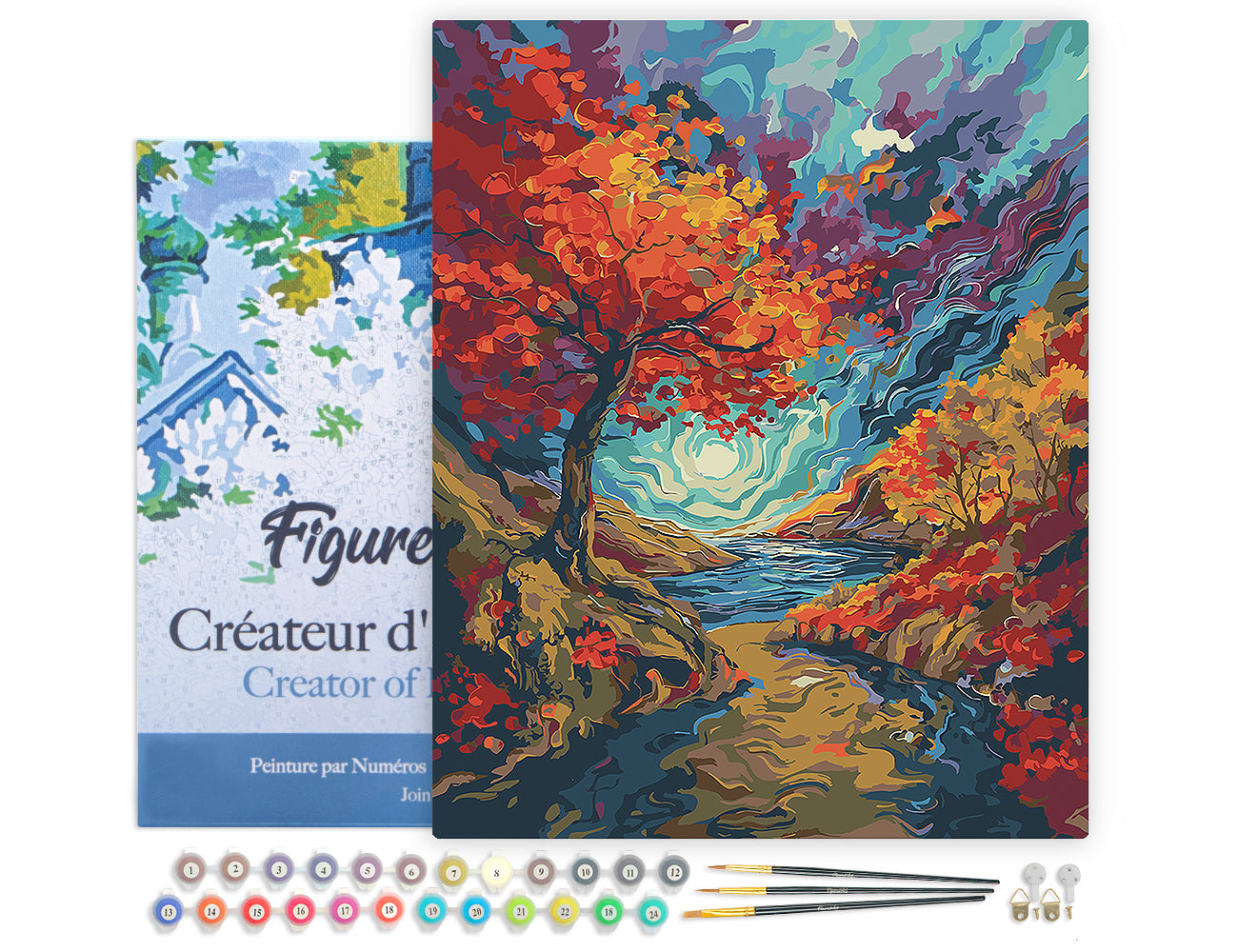 Malen nach Zahlen 40x50cm auf Keilrahmen gespannt Figured’Art Surrealistischer Herbst, inspiriert von Van Gogh