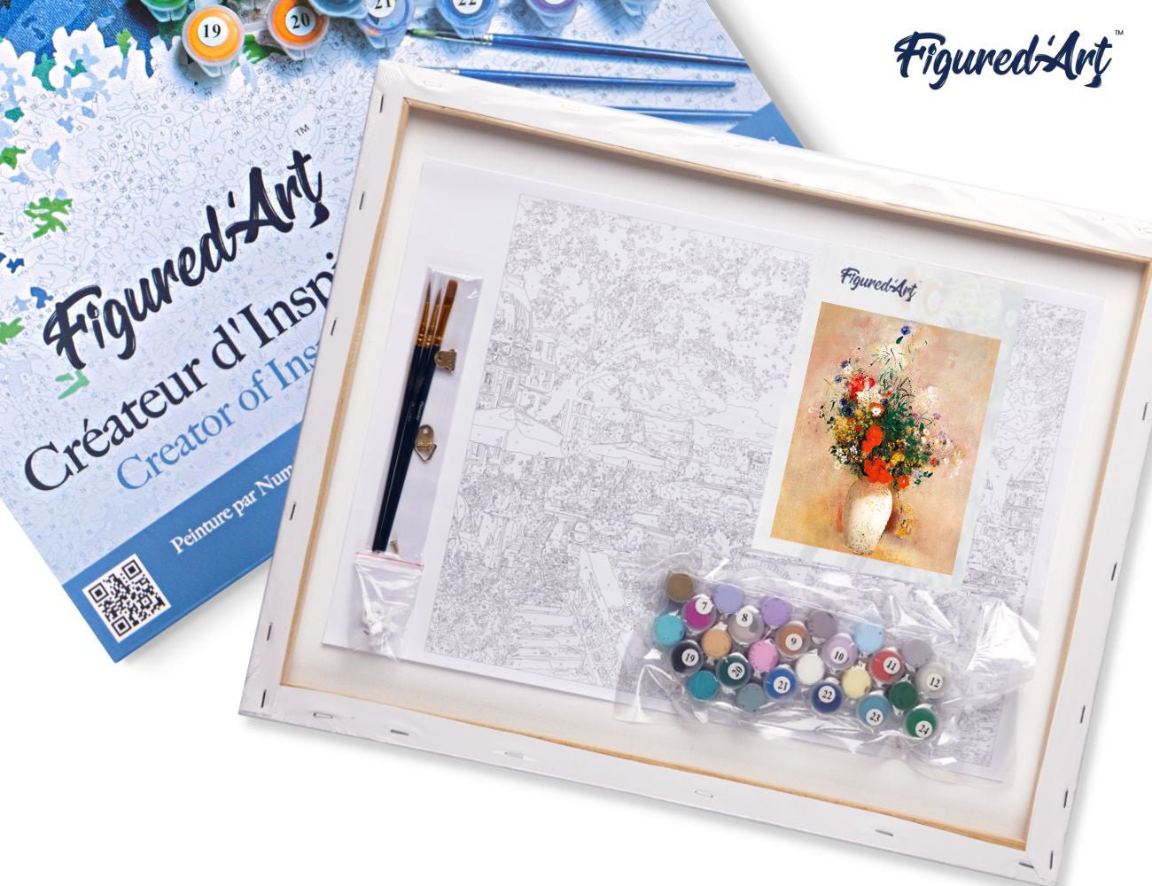Malen nach Zahlen 40x50cm auf Keilrahmen gespannt Figured’Art Vase mit Blumen – Odilon Redon