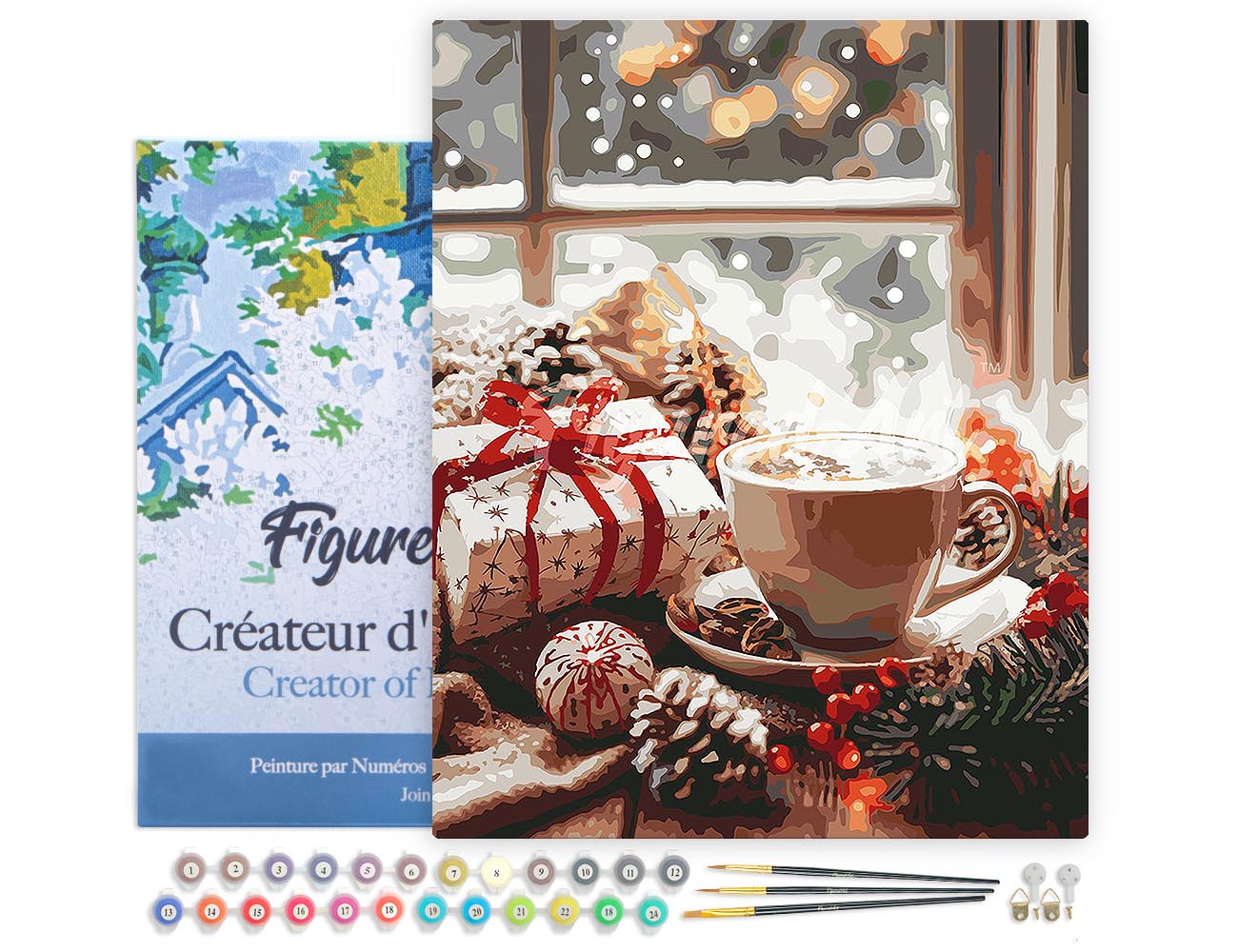 Malen nach Zahlen 40x50cm auf Keilrahmen gespannt Figured’Art Weihnachtskaffeepause