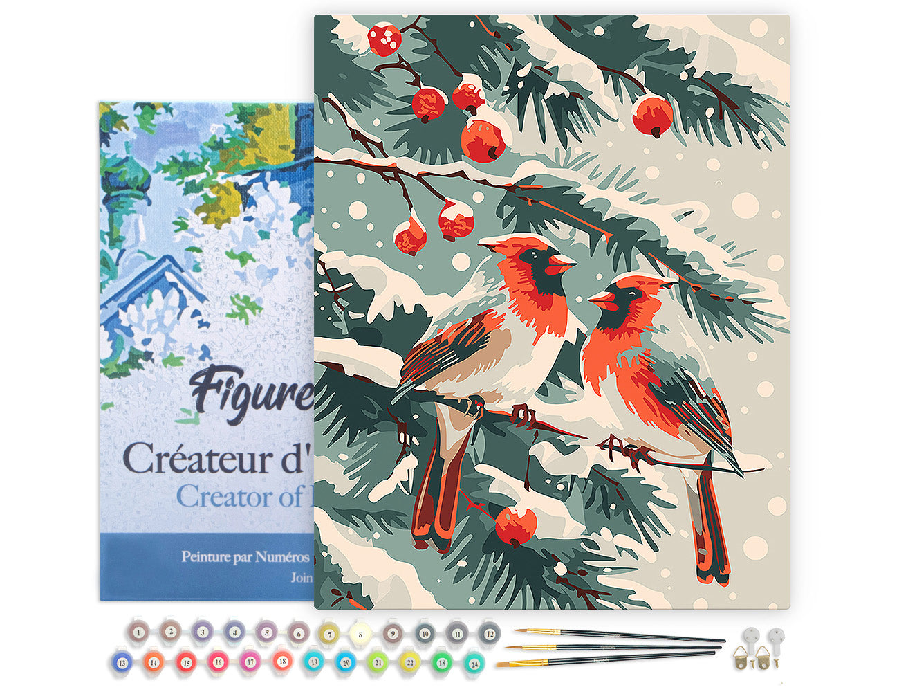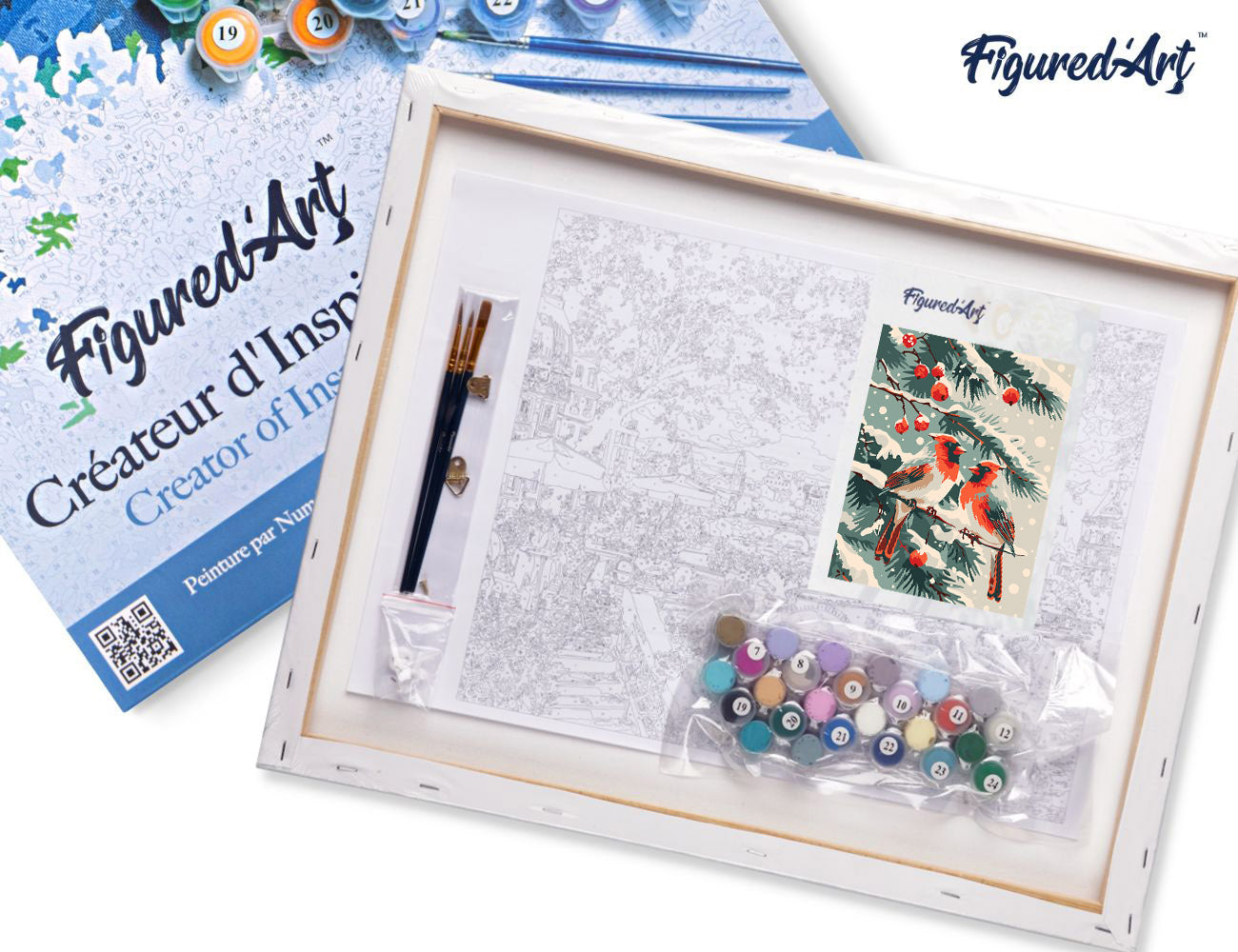 Malen nach Zahlen 40x50cm auf Keilrahmen gespannt Figured’Art Winterkardinal