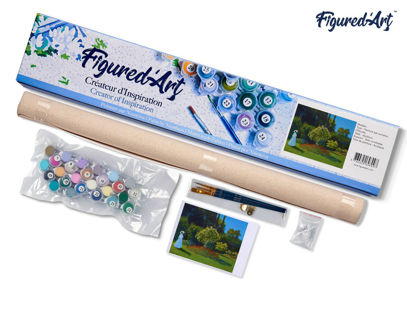 Malen nach Zahlen 40x50cm ohne Keilrahmen Figured’Art Frau im Garten – Monet