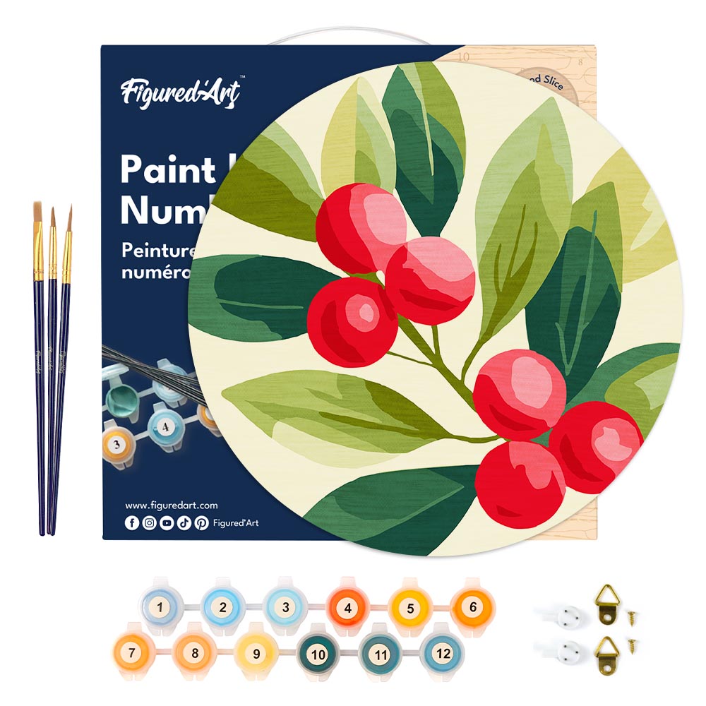 Entdecken Sie entspannte Kreativmomente mit dem Malen nach Zahlen auf Holzscheibe – Preiselbeeren von Figured'Art. Dieses Set verwandelt gemütliche Abende in eine ruhige Auszeit voller Farbe und Freude. Die natürliche Holzoberfläche mit warmer Textur macht Ihre fertige Arbeit zu einer stilvollen Dekoration, die direkt ins Wohnzimmer oder Arbeitszimmer passt.