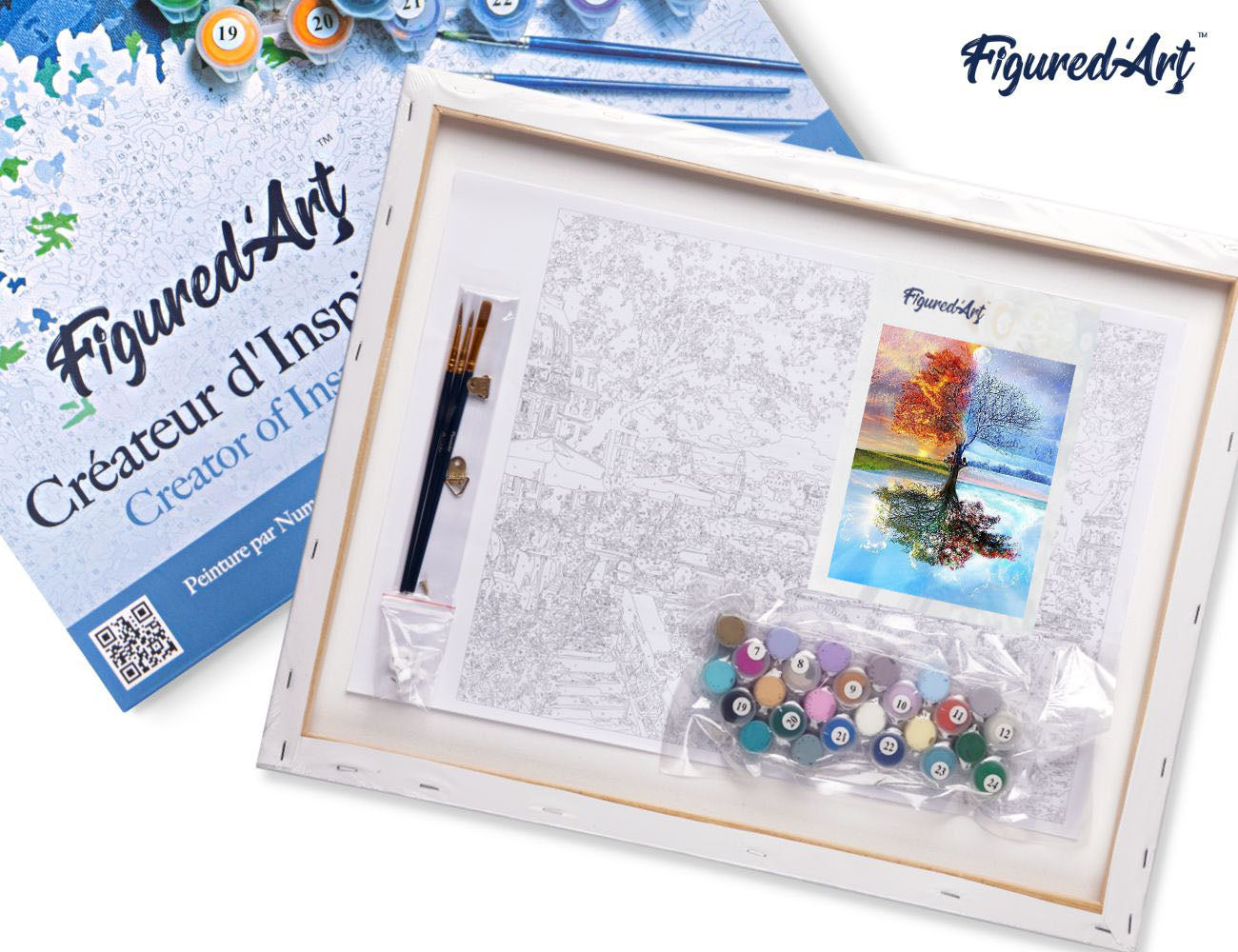 Mit dem Figured'Art Malen nach Zahlen Set Baum in vier Jahreszeiten holen Sie sich ein hochwertiges Komplett-Set nach Hause, das sofort startklar ist. Der 40x50 cm große Keilrahmen bietet eine stabile Basis, auf der Sie Schritt für Schritt ein detailreiches Kunstwerk entstehen lassen – perfekt für entspannte Kreativmomente und stilvolle WANDDEKO.