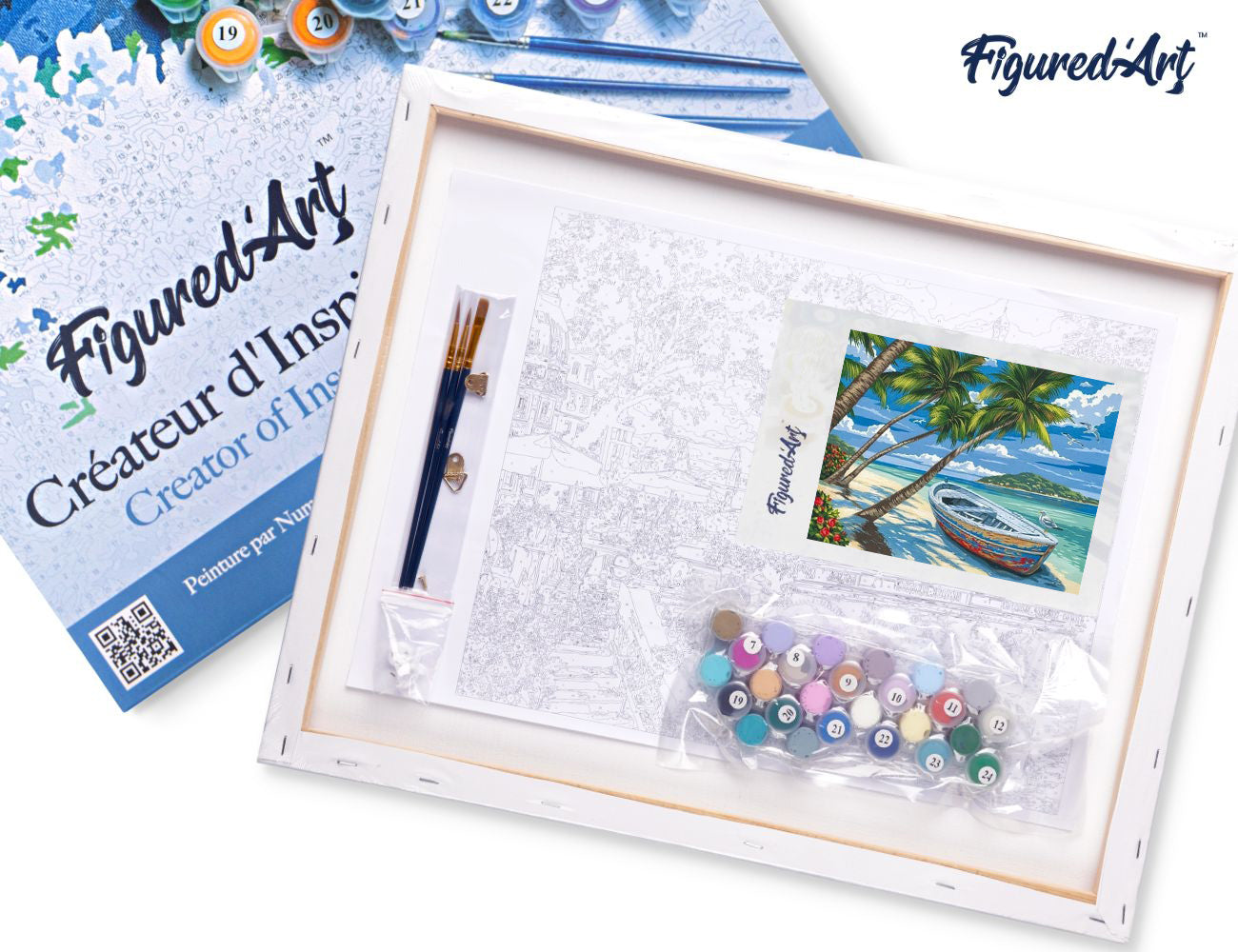 Mit Figured’Art Malen nach Zahlen wird kreatives Gestalten zum entspannten Erlebnis. Das Motiv Boot unter den Palmen entführt dich in Urlaubsstimmung und sorgt direkt für eine motivierende Malfläche auf deiner Leinwand.