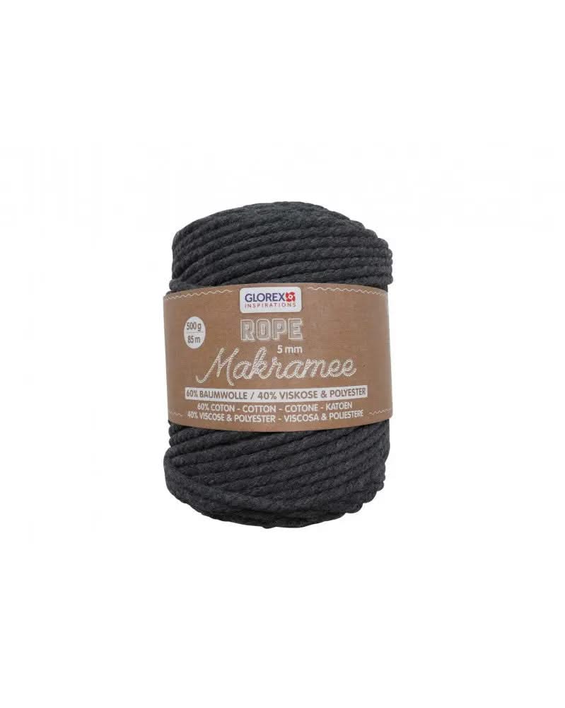 Entdecken Sie die vielseitige Makramee Rope 5mm 500g in stilvollem Anthrazit – die perfekte Baumwollkordel für Ihre kreativen Projekte. Diese dreifach gedrehte Kordel besteht aus 3 x 30 fein verflochtenen Einzelfäden, die zusammen ein besonders weiches, aber dennoch robustes Garn ergeben.