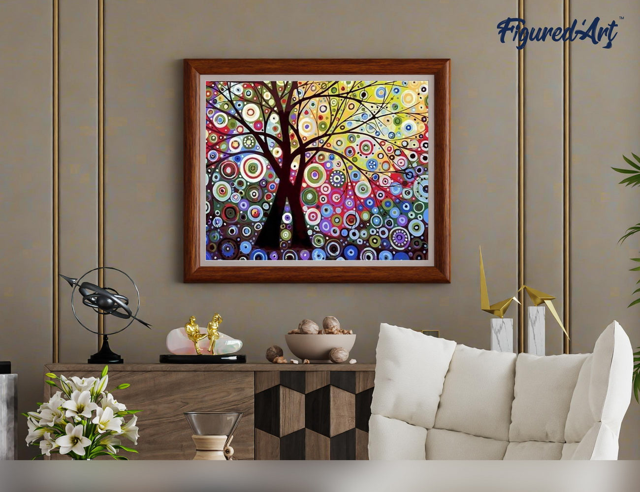 - Motiv: Baum im Buntglaseffekt – lebendige Farbwirkung
