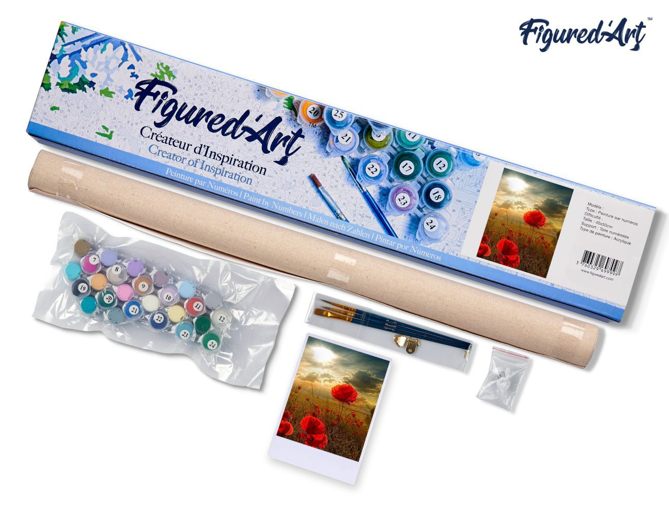 Entdecken Sie das Malen nach Zahlen Set von Figured’Art: Blumen unter der Sonne in 40x50 cm – ein kompaktes All-in-One-Kunstprojekt, das direkt zu Hause losgelegt werden kann. Die gerollte Leinwand kommt ohne Keilrahmen, ist leicht zu verstauen und bietet Ihnen alles, was Sie für ein lebendiges Meisterwerk benötigen.