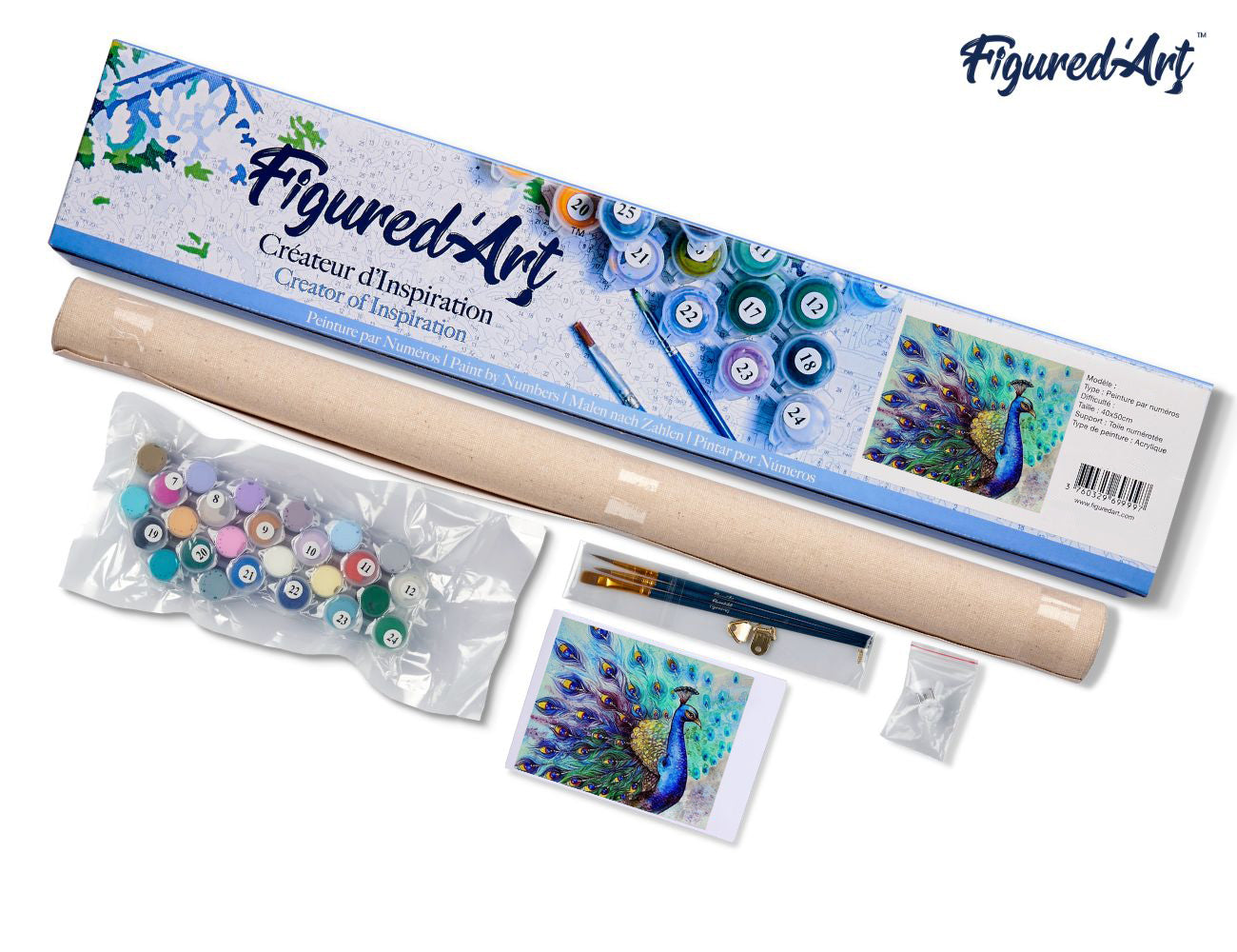 Figured’Art steht für eine klare, benutzerfreundliche Malerfahrung. Die abgestimmte Farbauswahl, die übersichtliche Nummerierung und die hochwertige Acrylfarben-Palette ermöglichen Ihnen einen entspannten Einstieg in Ihr Kunstwerk. Das Motiv Ihres Pfau fasziniert mit leuchtenden Tönen – perfekt, um Farbe und Kreativität in Ihr Zuhause zu bringen.