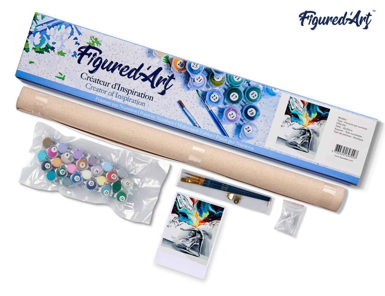 Erleben Sie die Farbexplosion mit dem Malen-nach Zahlen-Set Figured’Art – Farbexplosion, in der Größe 40x50 cm, geliefert als gerollte Leinwand ohne Keilrahmen. Dieses Set verwandelt einfache Farbschichten in ein lebendiges Kunstwerk und passt sich jedem Wohnstil an.