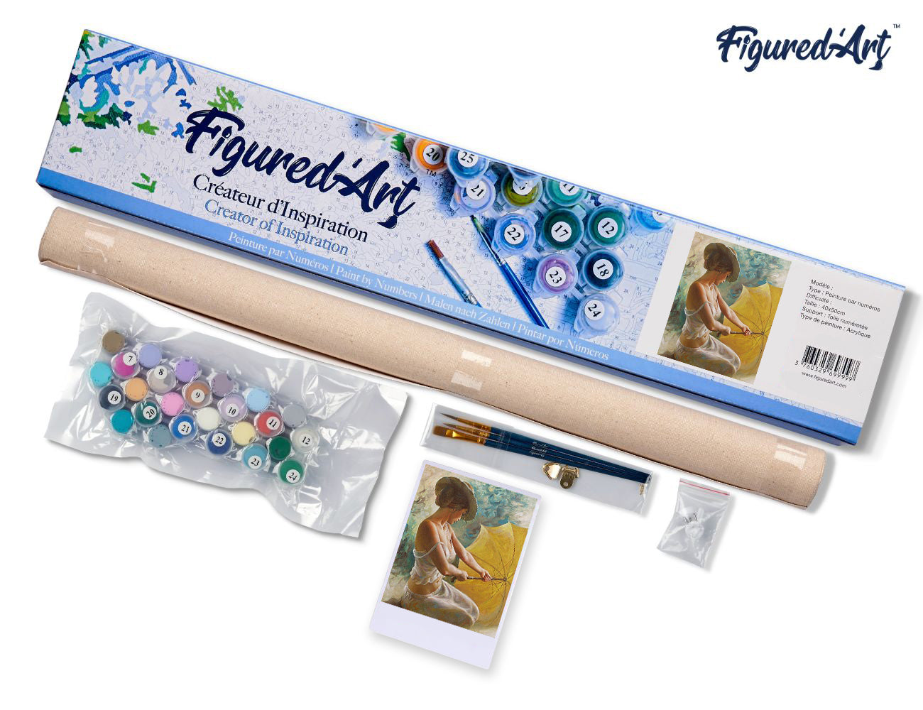 Malen nach Zahlen 40x50cm ohne Keilrahmen Figured’Art Junge Frau mit Regenschirm