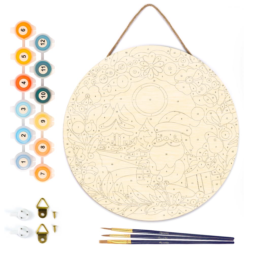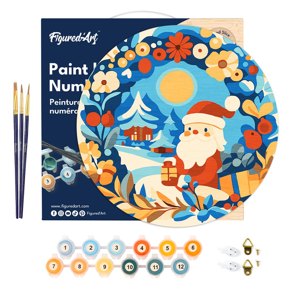 Entdecken Sie das Malen nach Zahlen auf Holzscheibe – Kranz und Weihnachtsmann von Figured'Art. Dieses kompakte Set vereint Entspannung, klare Anleitung und stilvolles Wohnaccessoire in einem durchdachten Paket. Mit hochwertigen, umweltfreundlichen Materialien verwandeln Sie einfache Farbfelder in ein persönliches Kunstwerk, das Ihr Zuhause festlich verschönert.