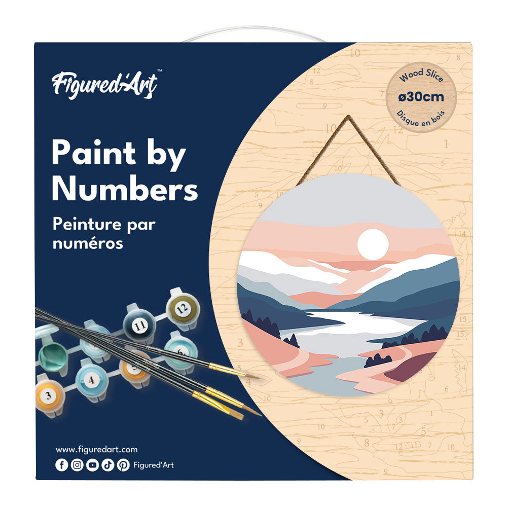 Erleben Sie mit dem Malen nach Zahlen auf Holzscheibe von Figured'Art eine ruhige Auszeit, in der Ihre Kreativität sanft erwacht. Das Set zeigt einen warmen Pastellsonnenaufgang auf einer stabilen Holzscheibe und kommt mit einer klaren Anleitung – perfekt für Einsteiger und alle, die entspannte Malfreude mit hochwertiger Holzdeko verbinden möchten.
