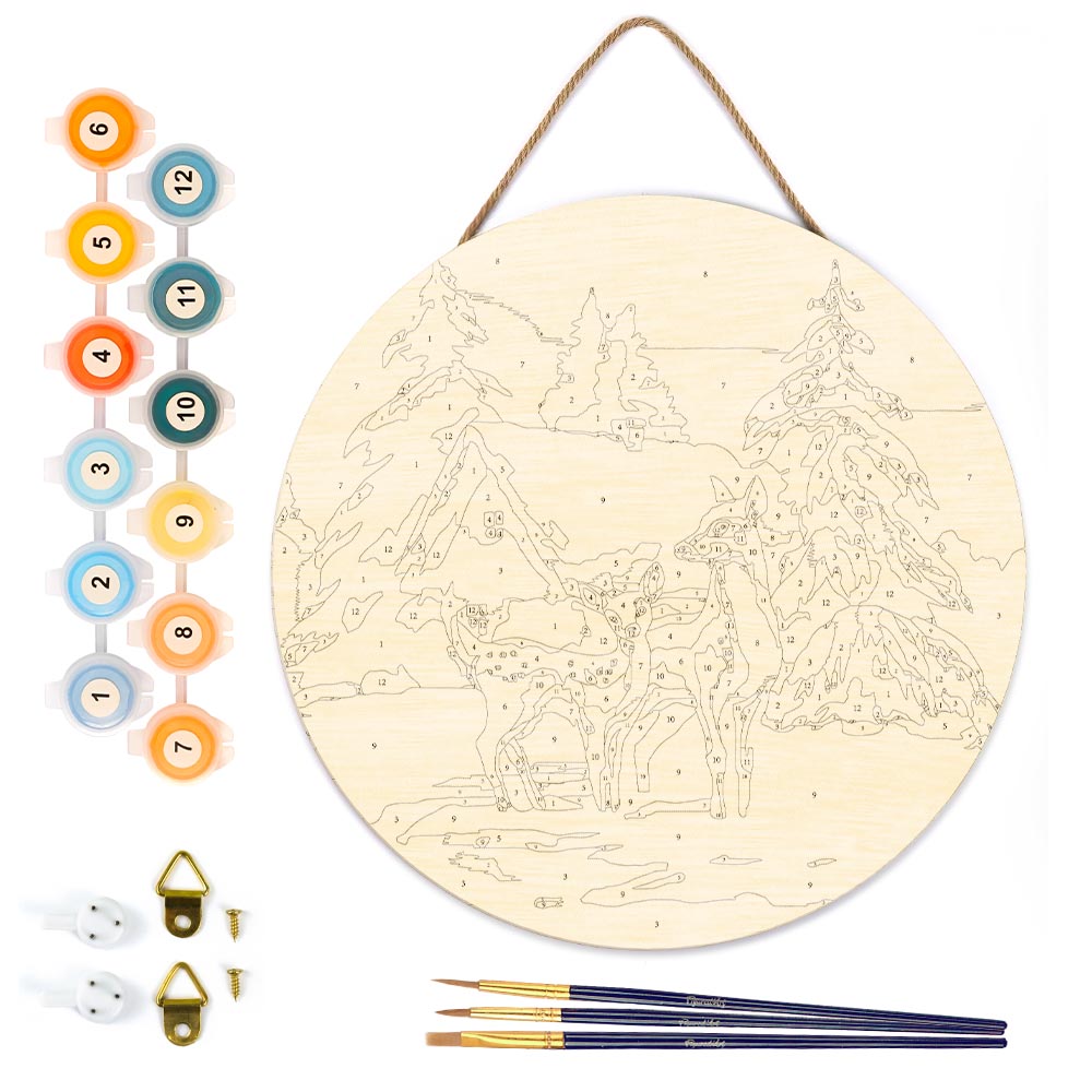 Genießen Sie das Malen nach Zahlen auf Holzscheibe – Rehe und Hütte von Figured'Art. Dieses Set lädt Sie ein, in ruhiger Atmosphäre neue Kreativität zu entdecken und alltägliche Hektik hinter sich zu lassen. Die klare, gut strukturierte Anleitung macht den Einstieg kinderleicht, während die natürliche Holzoberfläche wunderbare Wärme in Ihr Zuhause bringt.