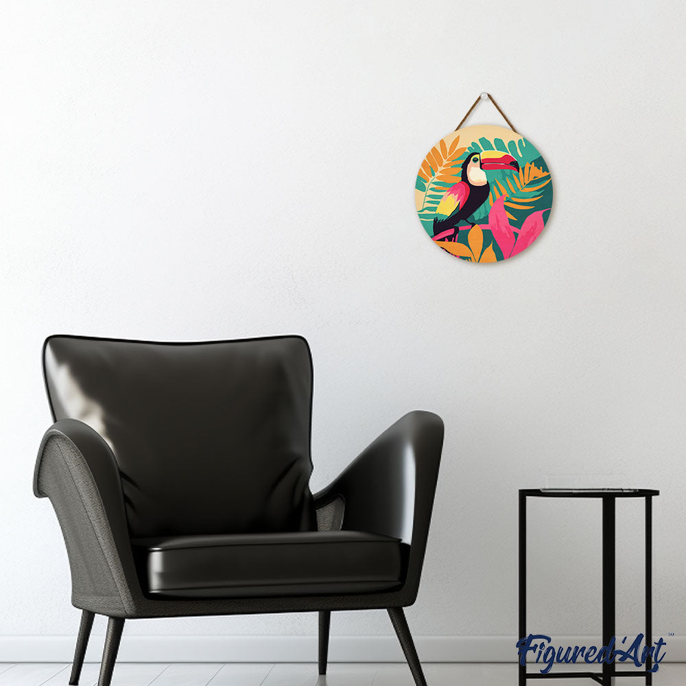 - Auffälliges Motiv: Tropischer Tukan als zentrales Highlight – ideal als Wanddeko oder dekoratives Wohnaccessoire.