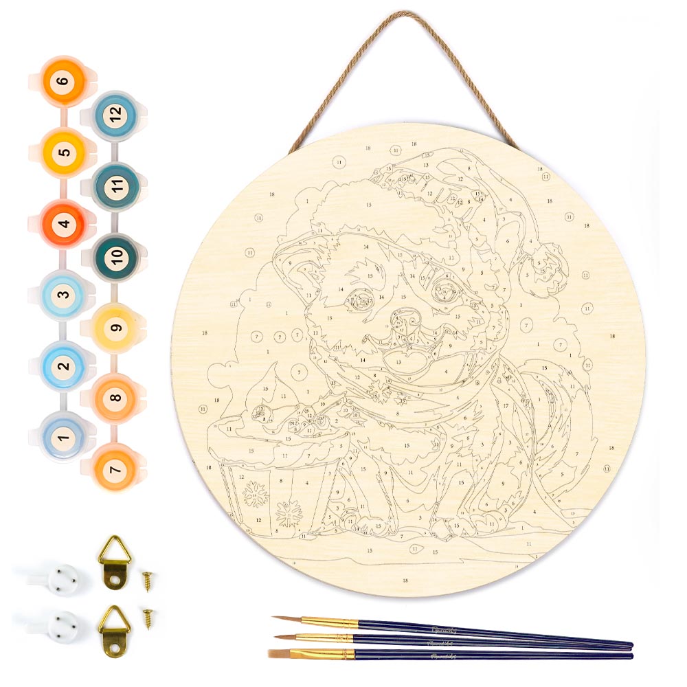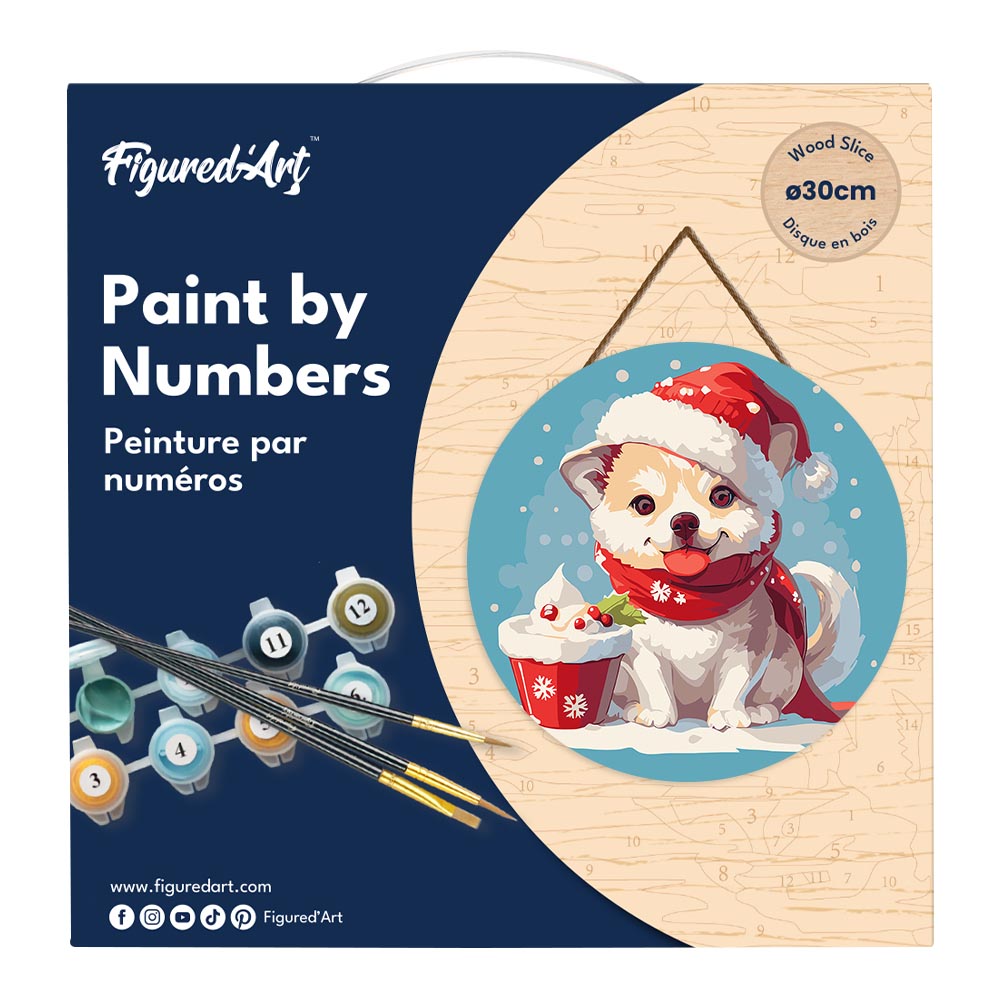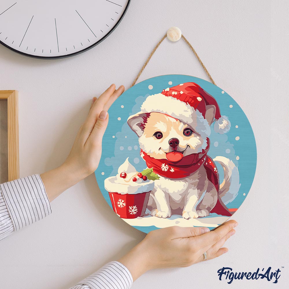 Gönnen Sie sich entspannte Kreativzeit mit dem Malen nach Zahlen auf Holzscheibe – Weihnachtswelpe von Figured'Art. Dieses Set vereint Ruhe, Fokus und eine charmante Dekoration für Ihr Zuhause – eine lohnende Beschäftigung, die Stress abbaut und gleichzeitig eine langlebige, stilvolle Weihnachtsdeko schafft.