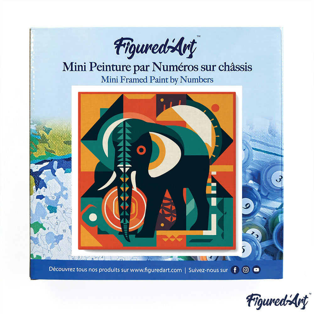 Entdecken Sie kreativen Malspaß mit dem Mini Malen nach Zahlen von Figured'Art. Dieses kompakte Set im 20x20 cm großen Format verwandelt einen abstrakten Art-Deco-Elefanten in ein fertiges Kunstwerk – ideal für Anfänger und Fortgeschrittene.