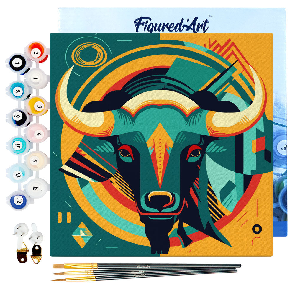 Entdecken Sie das Mini Malen nach Zahlen mit Rahmen 20x20cm von Figured'Art – eine kompakte, entspannende Malerfahrung, die sich perfekt in jeden Alltag integrieren lässt. Das abstrakte Art-Deco-Motiv Stier verwandelt Ihre Freizeit in ein fertiges Kunstwerk, stilvoll, platzsparend und sofort einsatzbereit.