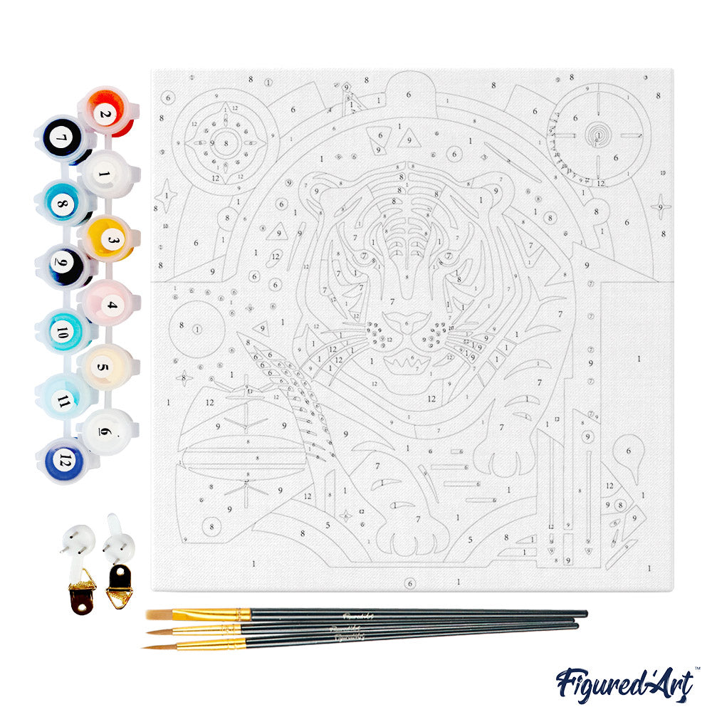 Mini Malen nach Zahlen mit Rahmen 20x20cm - Abstrakter Art-Deco-Tiger