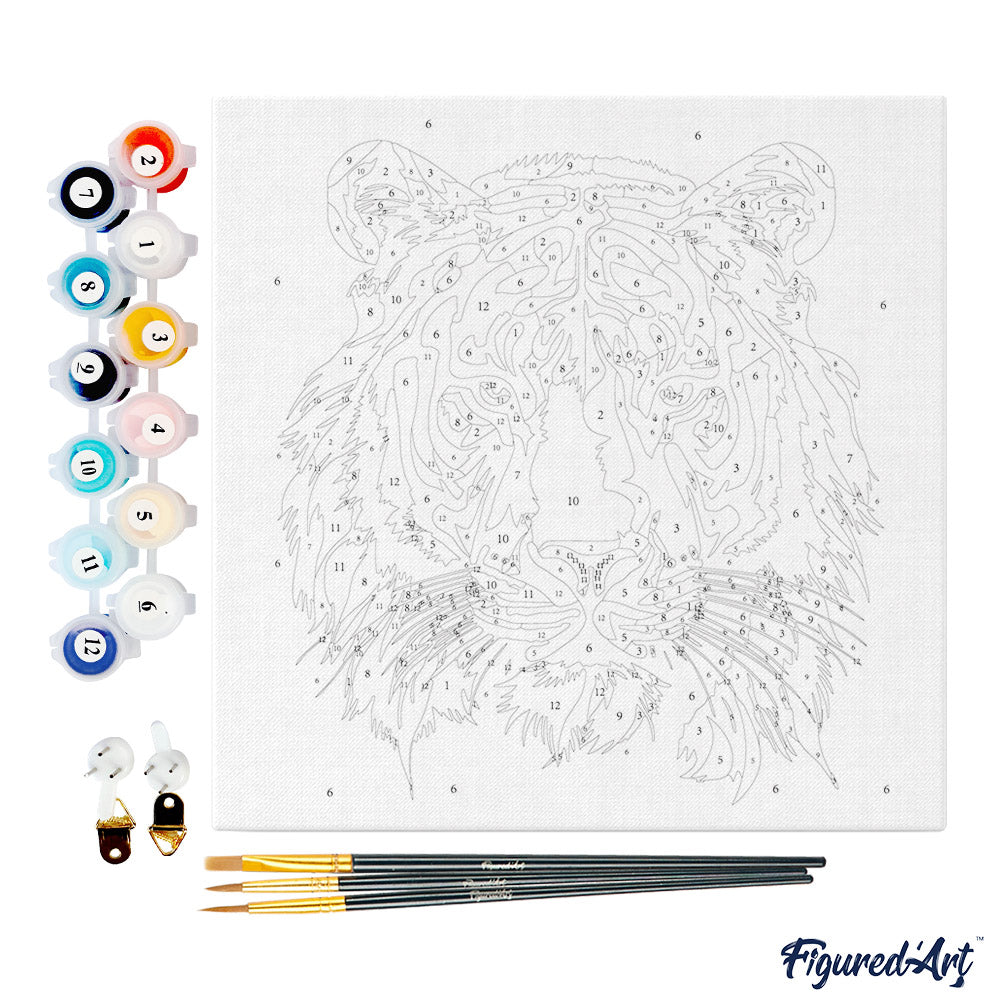 Mini Malen nach Zahlen mit Rahmen 20x20cm - Abstrakter Pop Art Tiger