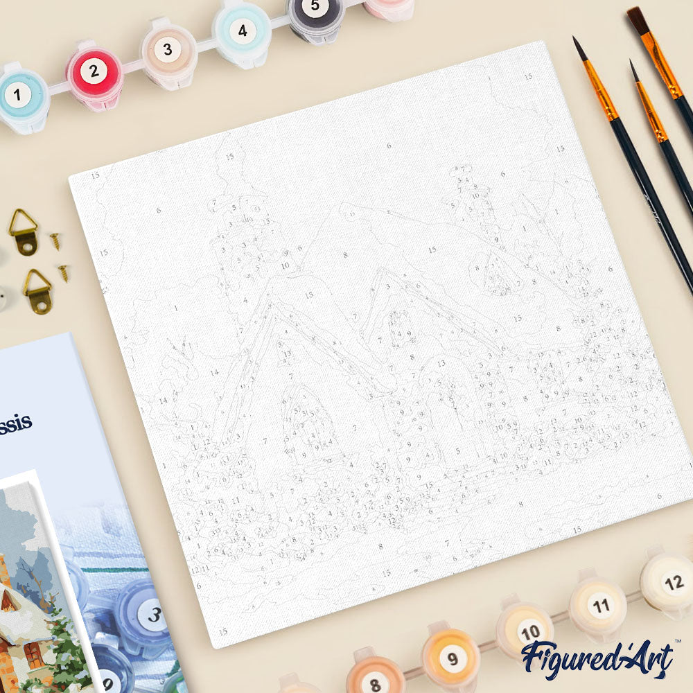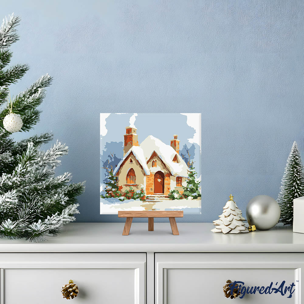 Erlebe die Freude am kreativen Malen mit dem Mini Malen nach Zahlen Set von Figured'Art. Das kompakte Set verwandelt das winterliche Backsteinhaus im Schnee direkt auf Leinwand in ein fertiges Kunstwerk – bereit zum Aufhängen, einfach umzusetzen und ideal als Geschenk.