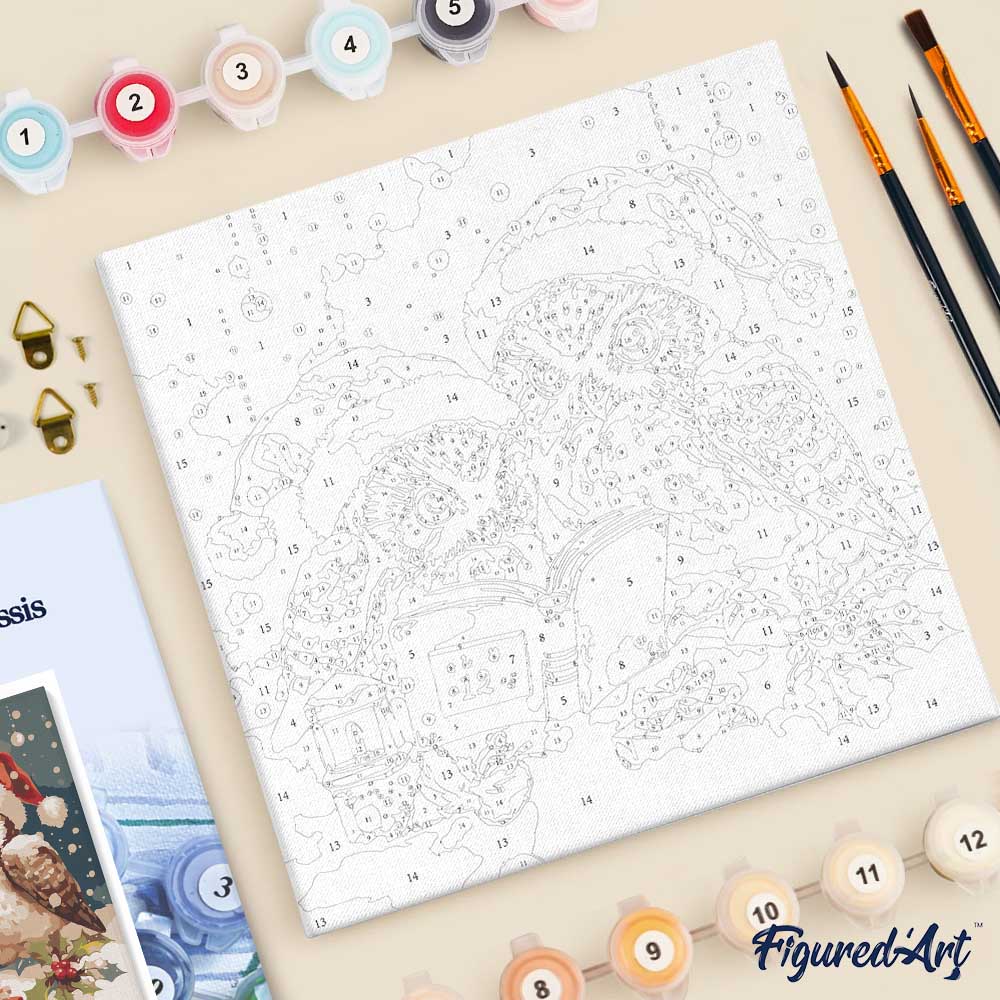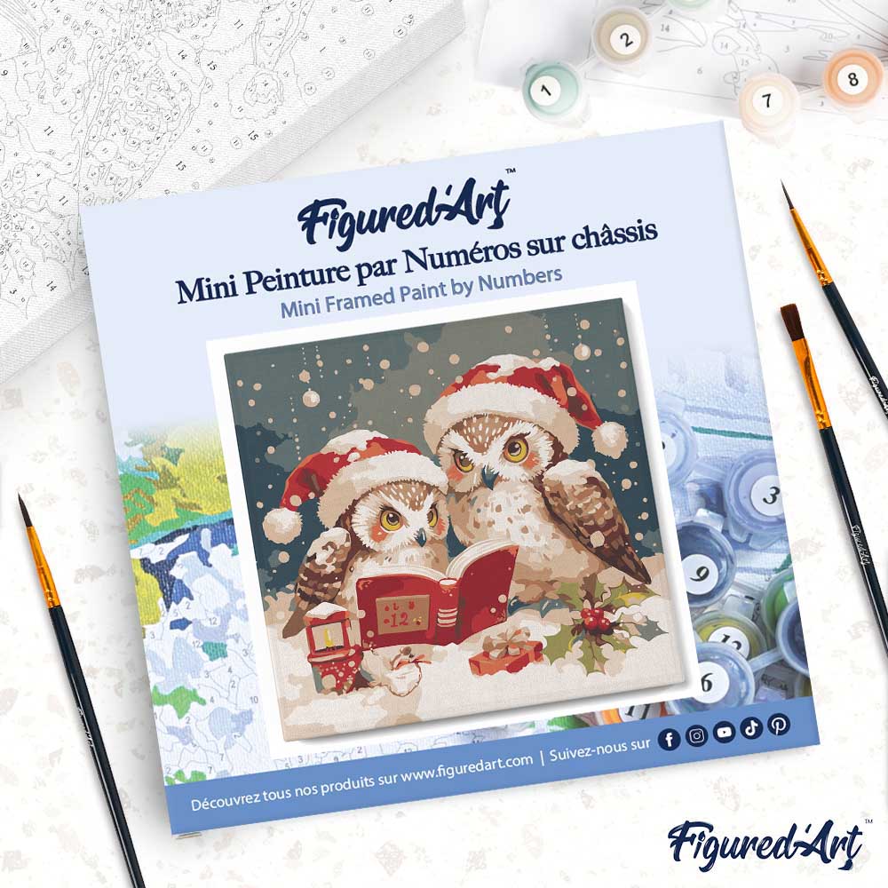 Mit dem Mini Malen nach Zahlen Set von Figured'Art verwandeln Sie die charmante Szene „Eulen-Weihnachtsmann beim Lesen“ in Ihr eigenes Kunstwerk – kompakt, gemütlich und perfekt geeignet für entspannte Malstunden. Die 20×20 cm Leinwand ist bereits auf den Rahmen gespannt und sofort einsatzbereit.