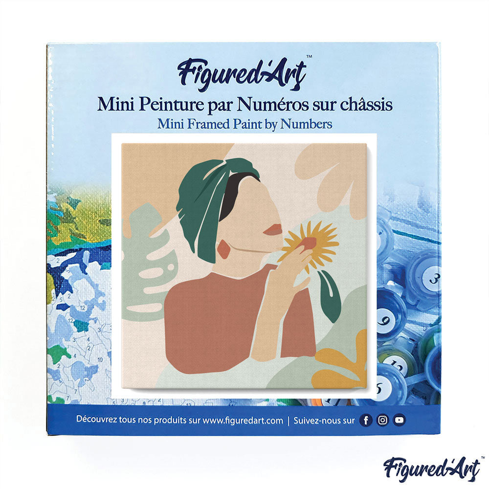 Entdecken Sie das Mini Malen nach Zahlen mit Rahmen von Figured'Art – ein kompaktes Kunstprojekt, das Ruhe in den Alltag bringt und dekorative Ergebnisse liefert. Mit diesem Set realisieren Sie das Motiv 'Frau mit grünem Turban' sofort: nummerierte Leinwand, montierter Rahmen, Nylon-Pinsel, nummeriertes Farbset und eine Motivvorlage – startklar für kreative Momente.