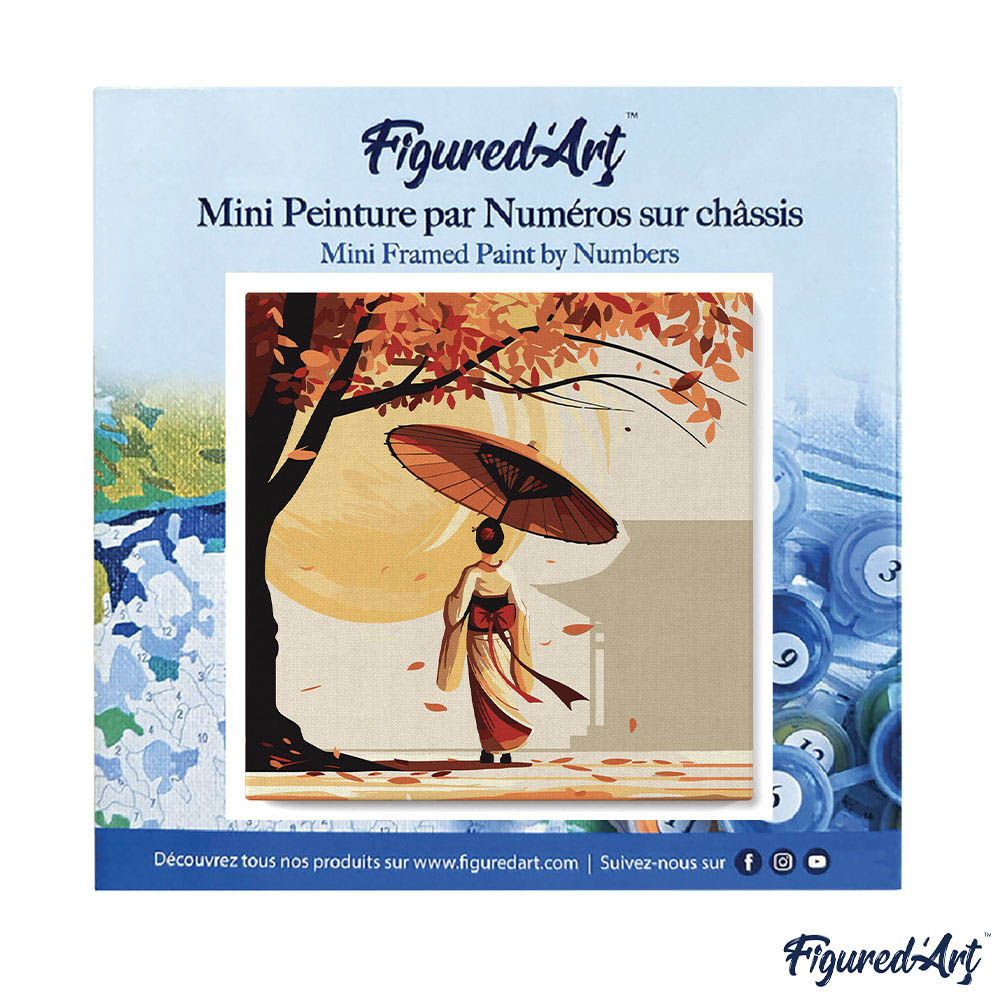 Mini Malen nach Zahlen mit Rahmen 20x20cm Friedlicher Spaziergang einer Geisha