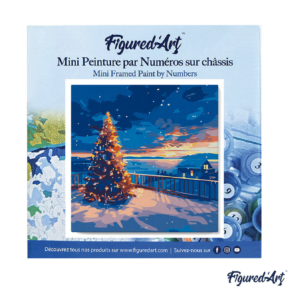 Bestellen Sie jetzt und starten Sie sofort mit Ihrem glitzernden Weihnachtssonnenuntergang – eine kompakte, hochwertige Malen-nach-Zahlen-Erfahrung von Figured'Art, speziell für gemütliche Stunden und kreative Einsteiger.