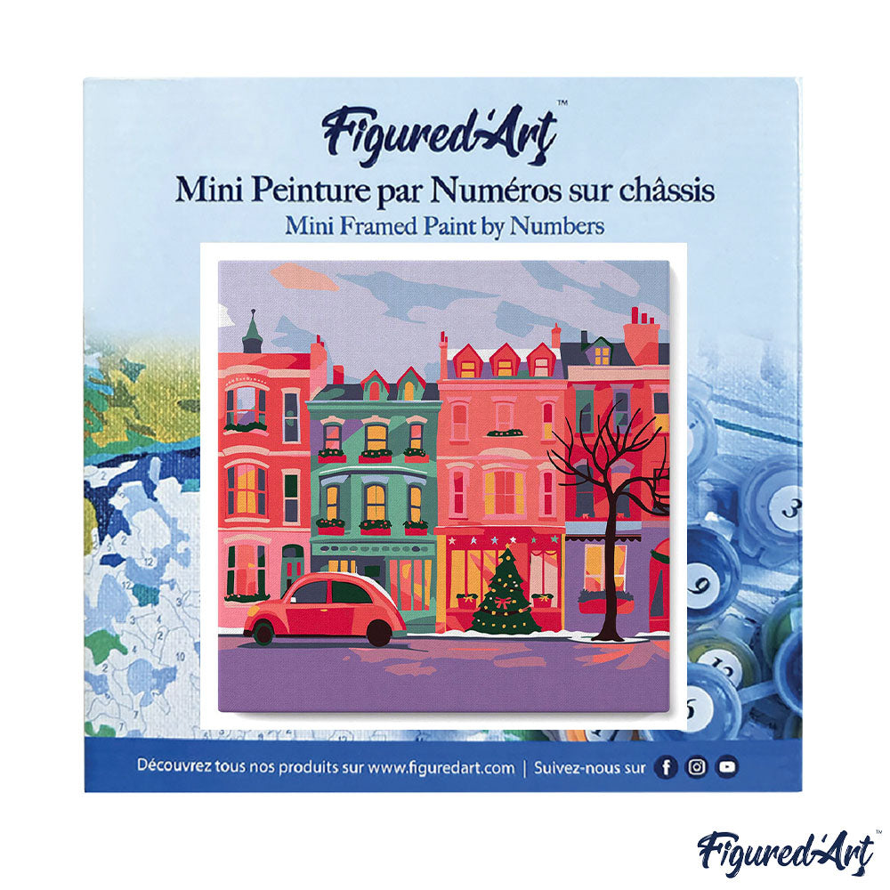 Entdecke mit Figured'Art dieses kompakte Mini-Malen-nach-Zahlen-Set, das festliche Farben direkt in dein Zuhause zaubert. Die 20x20 cm große Leinwand ist auf einem Holzrahmen gespannen und bereit, die hübsche, bunte Weihnachtsstraße zum Leben zu erwecken – perfektes DIY-Kunstprojekt für gemütliche Kreativmomente.