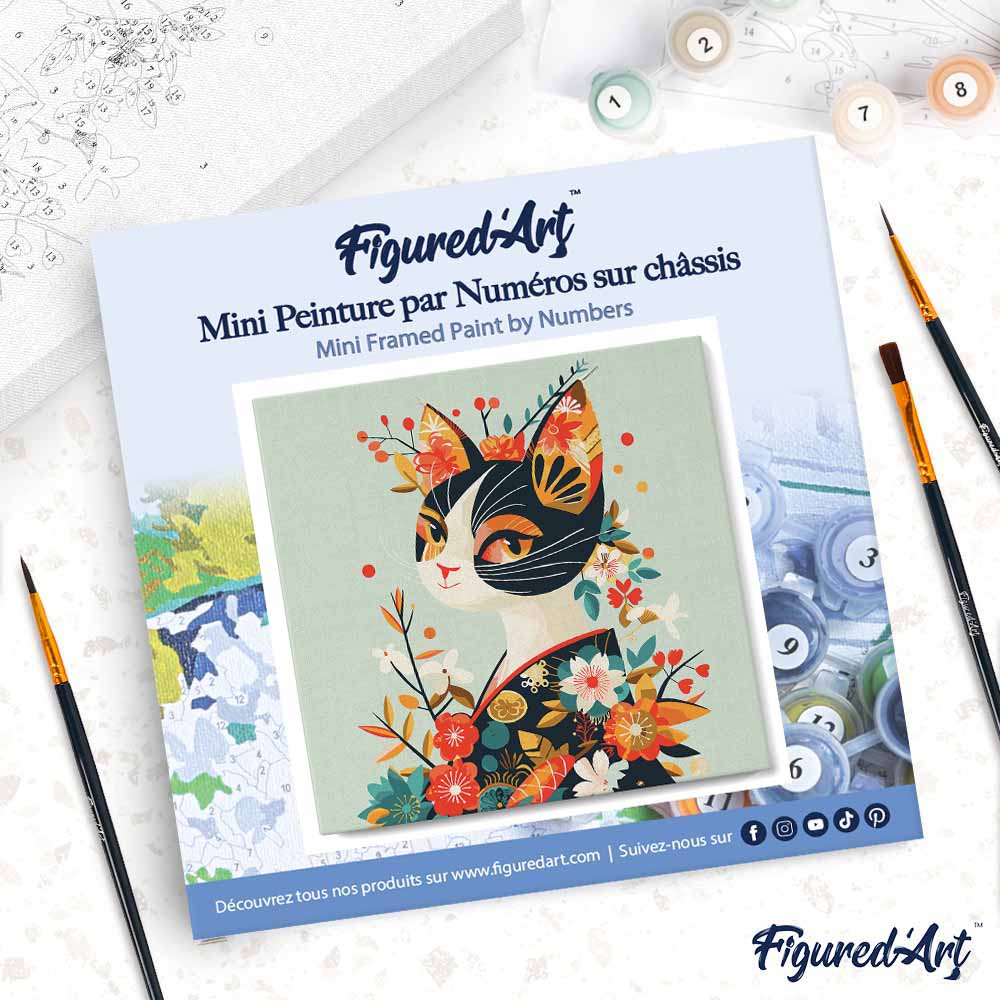 Entdecken Sie mit dem Mini Malen nach Zahlen von Figured'Art ein charmantes Kunstprojekt für Anfänger und Fortgeschrittene. Dieses Set verwandelt das Katzenmotiv mit Blumenmuster im Kimono in ein fertiges, dekoratives Kunstwerk auf einer 20x20 cm Leinwand und bietet alles, was Sie brauchen – sofort einsatzbereit und mit hochwertiger Materialqualität.