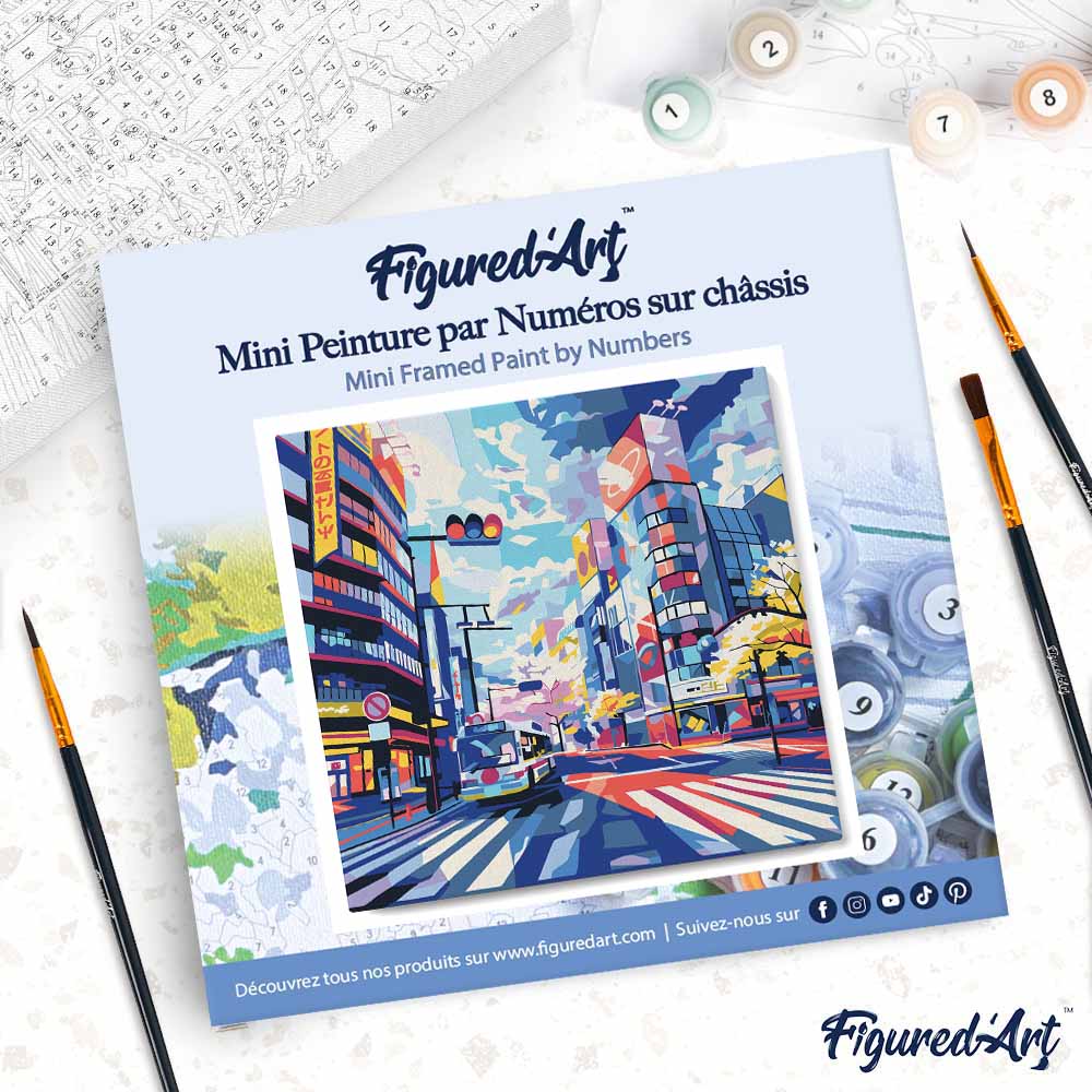 Entdecken Sie das Mini Malen nach Zahlen Set von Figured'Art – kompakt, inspirierend und ideal für schnelle Pop-Art Kreationen. Die 20×20 cm Leinwand ist bereits auf den Holzrahmen gespannt und bereit, direkt loszulegen. Mit diesem All-in-One-Set erhalten Sie alles, was Sie brauchen, um sofort Ihr eigenes Shibuya Pop Art Meisterwerk zu schaffen.