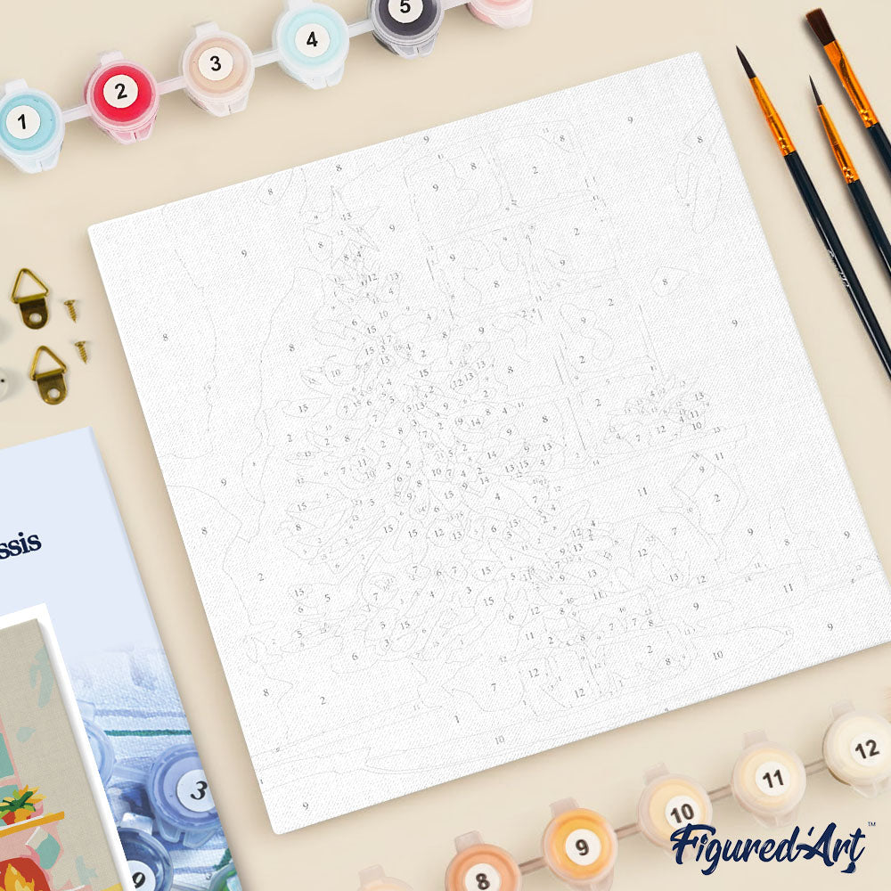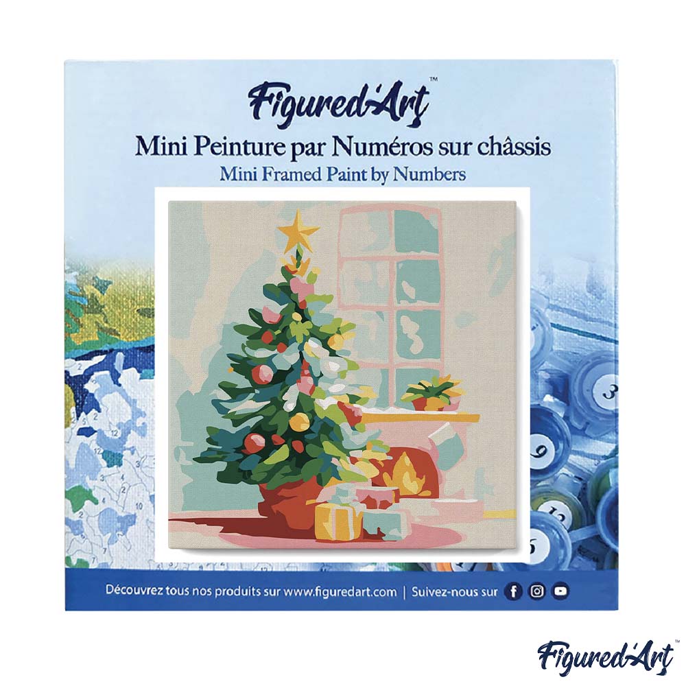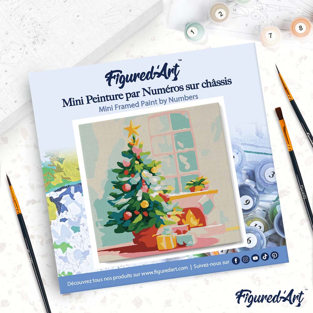 Entdecken Sie mit dem Mini Malen nach Zahlen Set von Figured'Art eine ruhige, kreative Auszeit für zu Hause. Das kompakte 20x20 cm Kunstwerk mit Tannenbaum und Kamin lässt sich sofort umsetzen – alles, was Sie brauchen, liegt bereit.