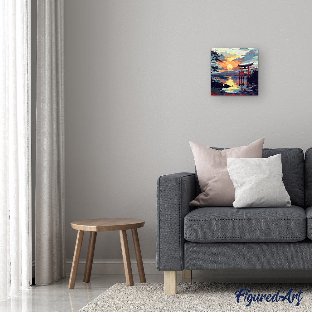 Mini Malen nach Zahlen mit Rahmen 20x20cm Torii-Tor bei Sonnenuntergang