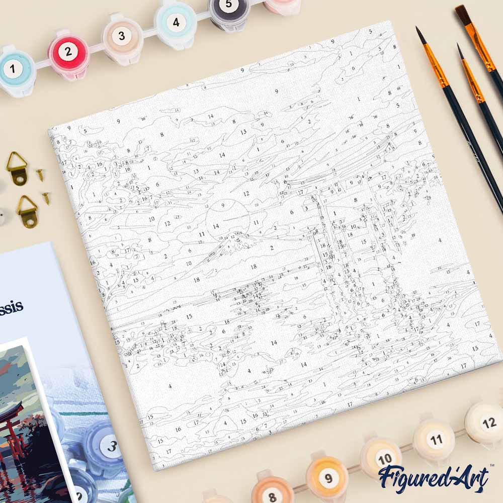 Entdecken Sie das Mini Malen nach Zahlen Set von Figured'Art – ein kompaktes, meditatives Künstlerlebnis im 20x20 cm Format. Mit vorgedruckter Leinwand, montiertem Holzrahmen und kompletter Ausrüstung verwandelt es den Sonnenuntergang am Torii-Tor in Ihr persönliches Kunstwerk. Die nummerierte Leinwand mit Motivausdruck ist klar zugeordnet und bereits auf den Rahmen gespannt – der Holzrahmen inklusive sorgt für Stabilität und eine fertige, rahmenfertige Wanddekoration.