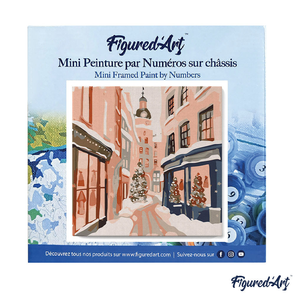 Erleben Sie mit dem Mini Malen nach Zahlen-Set von Figured'Art entspannte Kreativmomente und sofort sichtbare Ergebnisse. Das kompakte Set kommt auf einer 20x20 cm Leinwand, auf einem Holzrahmen montiert, und ist bereit zum Aufhängen – perfekt für kleine Schmuckstücke an Wand oder Regal. Die Motivvorlage zeigt eine reizvolle Verschneite Weihnachtsallee und lädt zu einem stimmungsvollen Kunstwerk ein, das im Handumdrehen fertig ist.
