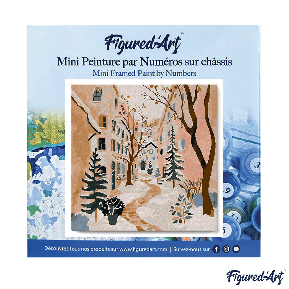 Mit dem Mini Malen nach Zahlen Set Verschneites Dorf von Figured'Art holen Sie sich ein kompaktes Kunstprojekt, das sofort inspiriert. Die verschneite Dorf-Szene auf 20x20 cm wird mit klaren Farbanweisungen, einem montierten Holzrahmen und allem nötigen Werkzeug direkt zum kreativen Erlebnis. Die Leinwand aus Leinen ist bereits gespannt, und das nummerierte Farbset macht das Zuordnen der Farben einfach – perfekt für Anfänger, Fortgeschrittene und alle, die eine entspannte Malzeit genießen möchten.