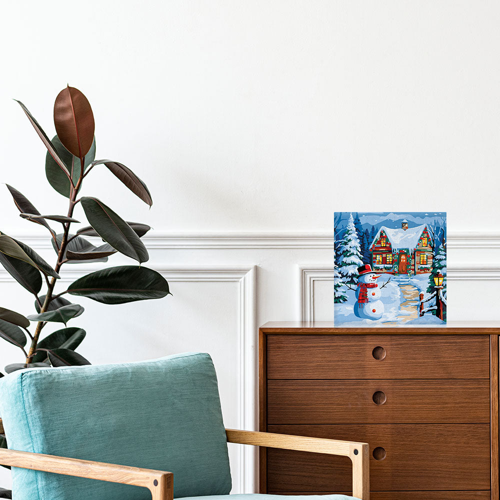Erleben Sie festliche Kreativität mit dem Mini Malen nach Zahlen Set von Figured'Art. Das kompakte 20x20 cm Leinwandprojekt kommt in einem fest montierten Holzrahmen und bringt Weihnachtsstimmung direkt in Ihr Zuhause. Das zentrale Motiv „Weihnachtsmann in Schneekugel“ macht dieses Kunstprojekt zu einem echten Blickfang für jeden Raum.