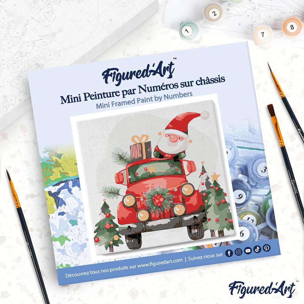 Figured'Art überzeugt durch hochwertige Sets und verlässliche Ergebnisse – starten Sie noch heute Ihr kreatives Weihnachtsprojekt und bestellen Sie das Mini Malen nach Zahlen 20x20 Weihnachtsmann-LKW jetzt.