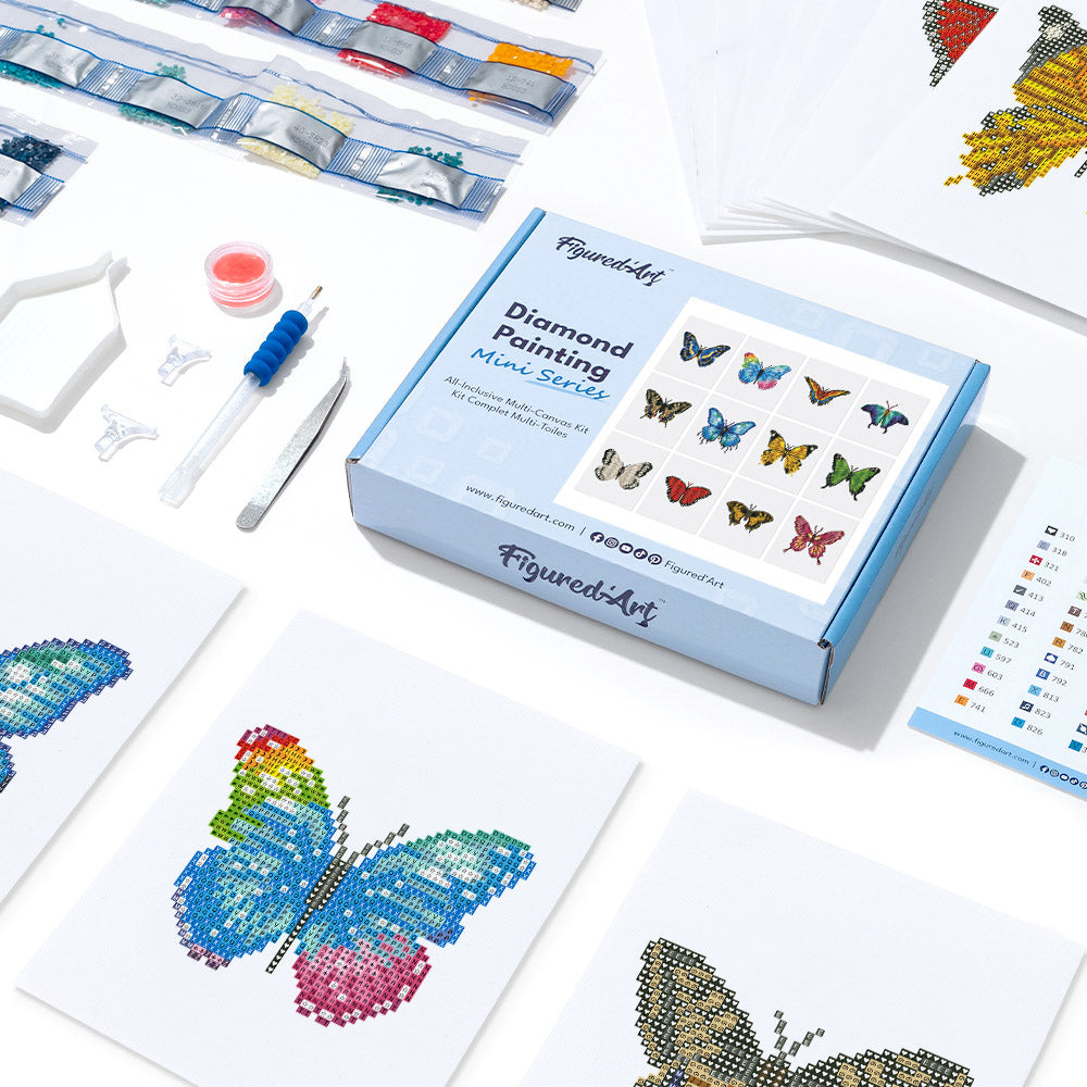 Erleben Sie kreative Entspannung mit der Figured'Art Mini-Serie Diamond Painting Blumen – 12 kompakte Leinwände, jeweils 15 × 18 cm, ideal für gemütliche Kreativmomente zuhause.