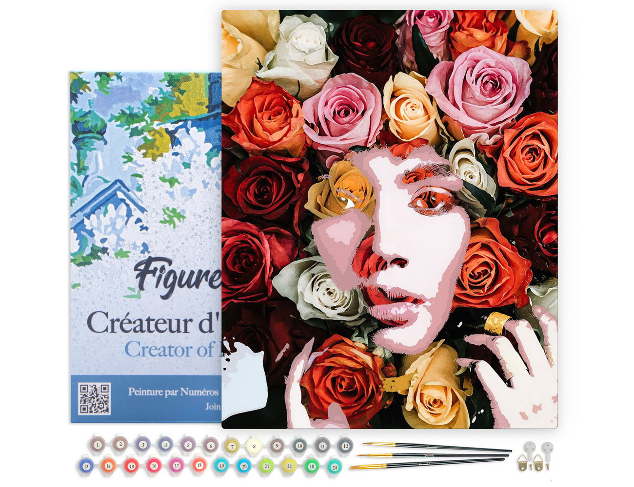 Figured'Art Malen nach Zahlen 40x50cm auf Keilrahmen gespannt Rosengesicht