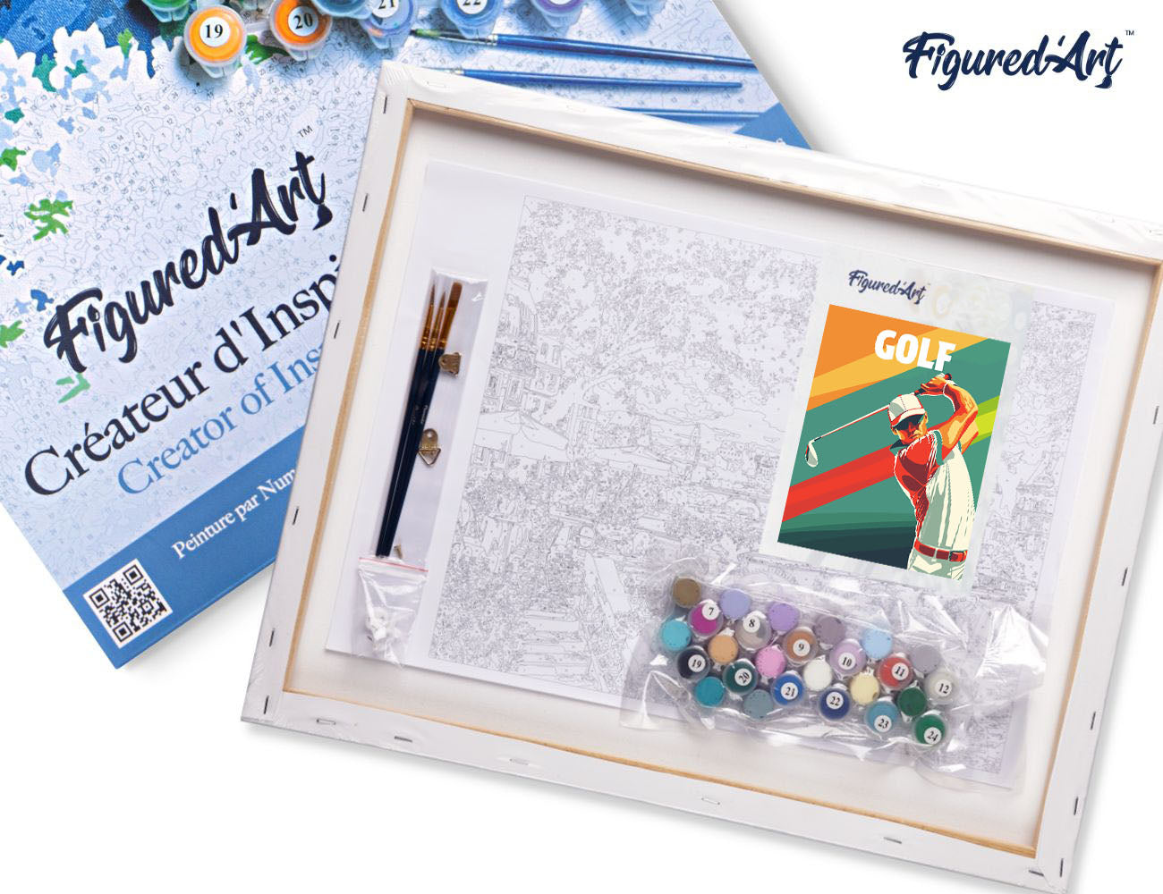 Malen nach Zahlen 40x50cm auf Keilrahmen gespannt Figured’Art Sportposter Golf
