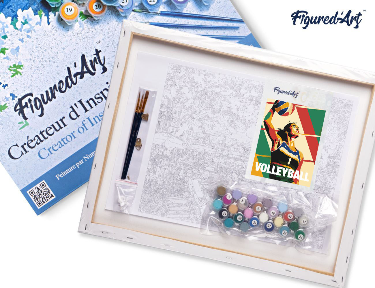 Malen nach Zahlen 40x50cm auf Keilrahmen gespannt Figured’Art Sportposter Volleyball