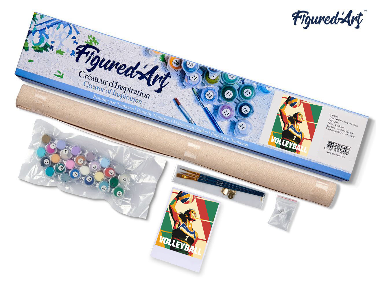 Malen nach Zahlen 40x50cm auf Keilrahmen gespannt Figured’Art Sportposter Volleyball