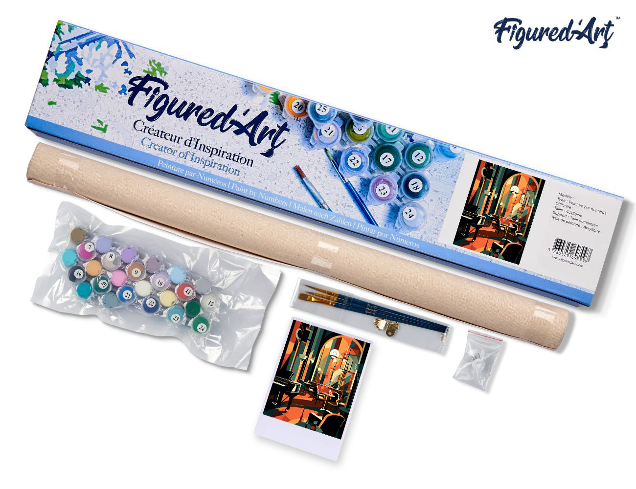 Dieses Malen nach Zahlen Set enthält alles Notwendige um Ihr eigenes Kunstwerk zu verwirklichen: 1 nummerierte Leinwand, 3 Nylon-Pinsel in verschiedenen Grössen, 1 nummeriertes Farbset, 1 Papierausdruck Ihres Motives zur Veranschaulichung, 2 Schrauben + 2 Haken für die Befestigung an die Wand. Grösse 40x50cm, Gerollte Leinwand ohen Rahmen, 20-24 Töpfe mit Acrylfarben, Gewicht: 0.3kg.