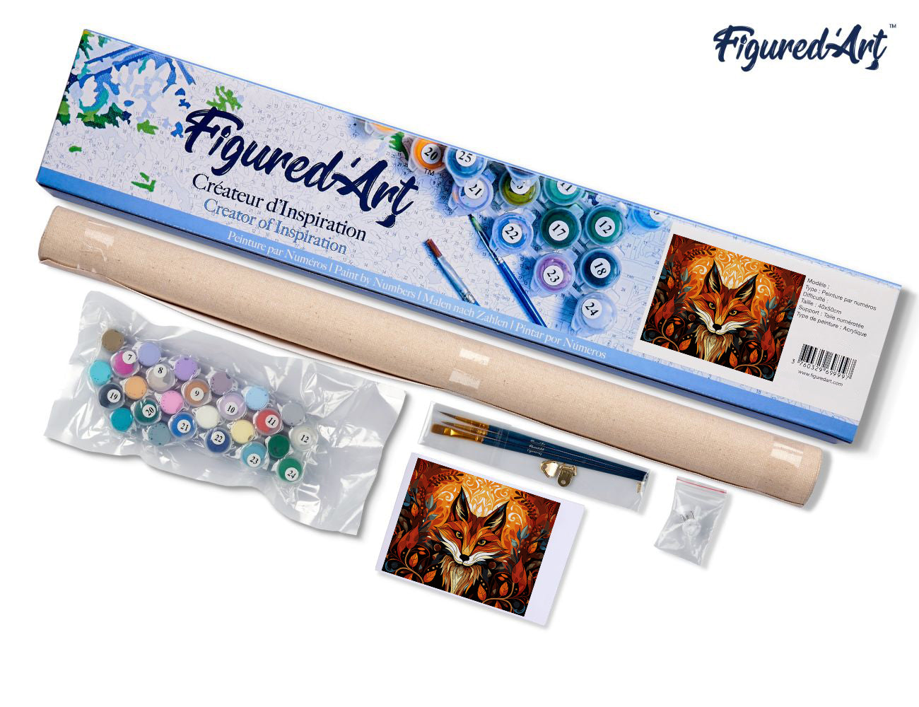 Dieses Malen nach Zahlen Set enthält alles Notwendige um Ihr eigenes Kunstwerk zu verwirklichen: 1 nummerierte Leinwand, 3 Nylon-Pinsel in verschiedenen Grössen, 1 nummeriertes Farbset, 1 Papierausdruck Ihres Motives zur Veranschaulichung, 2 Schrauben + 2 Haken für die Befestigung an die Wand. Grösse 40x50cm, Gerollte Leinwand ohen Rahmen, 20-24 Töpfe mit Acrylfarben, Gewicht: 0.3kg.