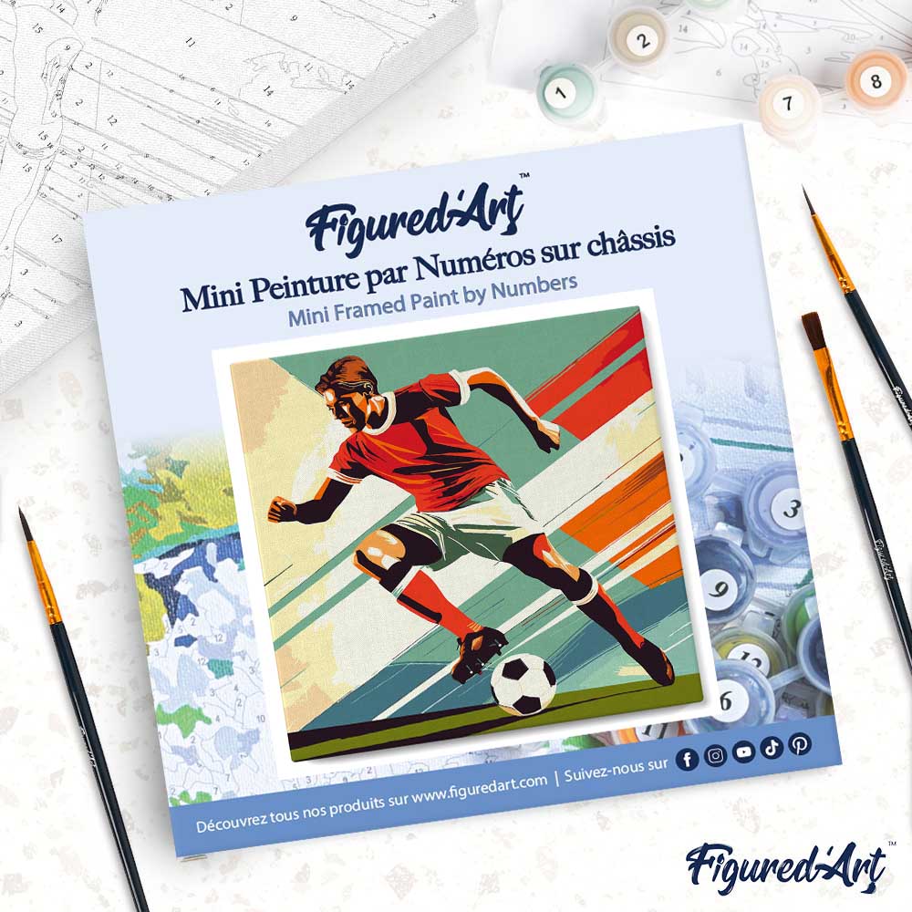 Mit Figured'Art wird Malen nach Zahlen zum kompakten, sofort startklaren Erlebnis. Das Mini-Set 20x20 cm für Fußballfans verwandelt dein Zuhause in ein fertiges Kunstwerk – inklusive montiertem Holzrahmen und vorgespannter Leinwand. Alles Nötige liegt bereit, damit du sofort loslegen kannst.