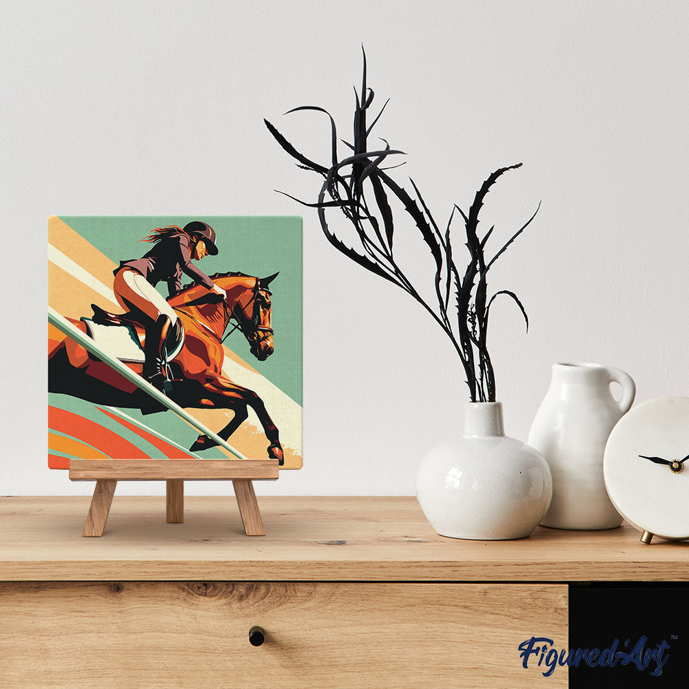 Erleben Sie Kreativität in kompakter Form mit dem Mini Malen nach Zahlen – Sportposter Reitsport von Figured'Art. Dieses Set verwandelt Ihr Motiv in ein fertiges Kunstwerk auf einer 20x20 cm großen Leinwand – ideal für gemütliche Stunden zuhause, im Büro oder als liebevolles Geschenk.