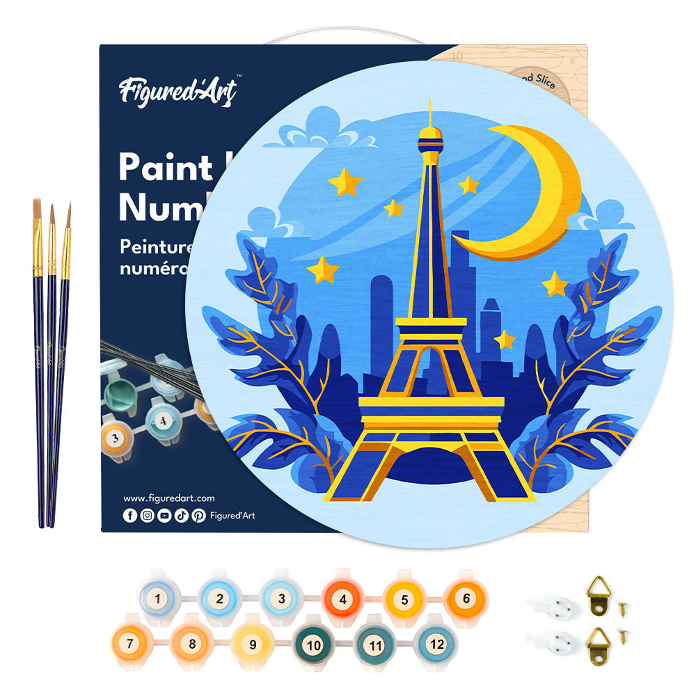 Gönnen Sie sich eine entspannte Auszeit mit Malen nach Zahlen auf einer Holzscheibe – Eiffelturm von Figured'Art. Dieses Set verwandelt eine natürliche Holzoberfläche in ein elegantes Wanddekor und bietet gleichzeitig eine beruhigende, kreative Erfahrung mit nachhaltigem Kunstgenuss.