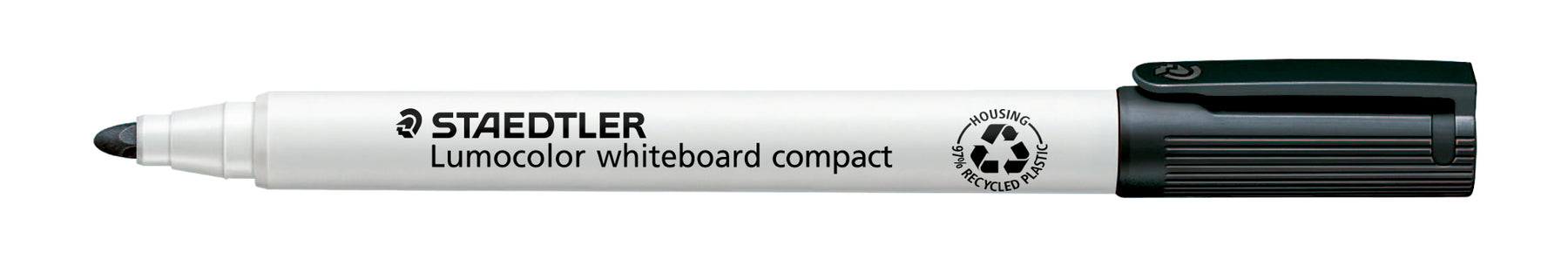 Der Lumocolor® whiteboard compact 341 schwarz von STAEDTLER ist die zuverlässige Wahl für klare Linien auf Whiteboards, Glas und Porzellan. Trocken abwischbar, schnelltrocknend und geruchsarm sorgt er für eine einfache Handhabung – dank DRY SAFE kann die Spitze auch offen liegen, ohne einzutrocknen.