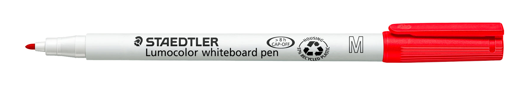 Der Lumocolor® whiteboard pen 301 rot von STAEDTLER ist der ideale Marker für kleine Whiteboards, das Lumocolor memo board 641 und Schülertafeln.